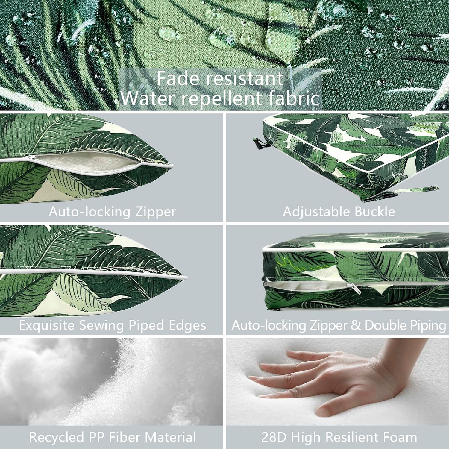- ⭐Material: Made of 100% durable polyester fabric and soft filling material. It’s water repellent and fade-resistant. Won’t fading under the direct sunlight over 500 hours. Cushions are filled with 28D high resilient foam, overstuffed construction for enhanced comfort and longevity.