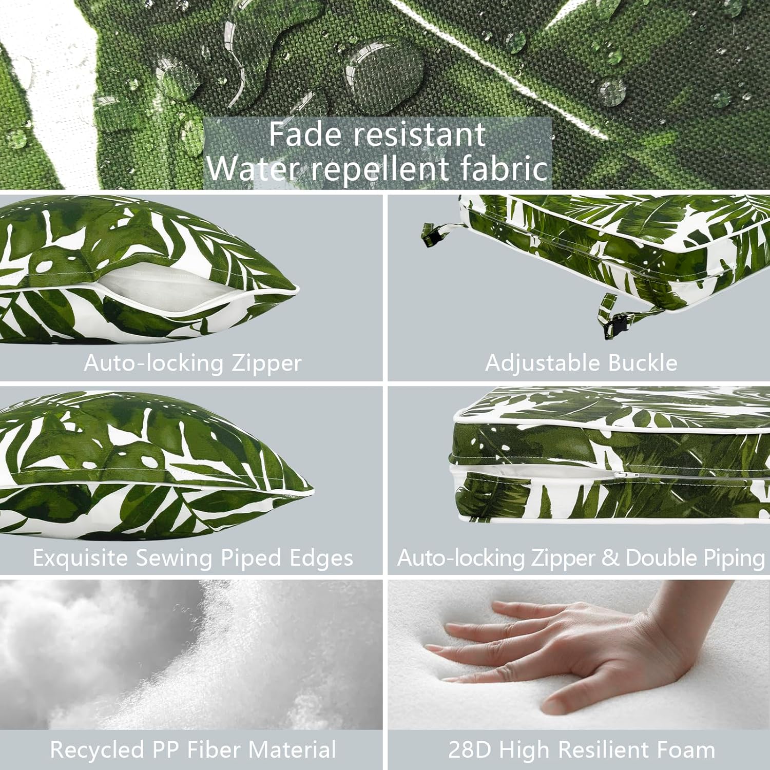 LVTXIII Outdoor/Indoor Deep Seat Cushion Patio Seat and Back Cushion Set All-Weather Replacement Chair Cushion for Chairs Sofa and Coach, 24"x24"x4", Palms Green