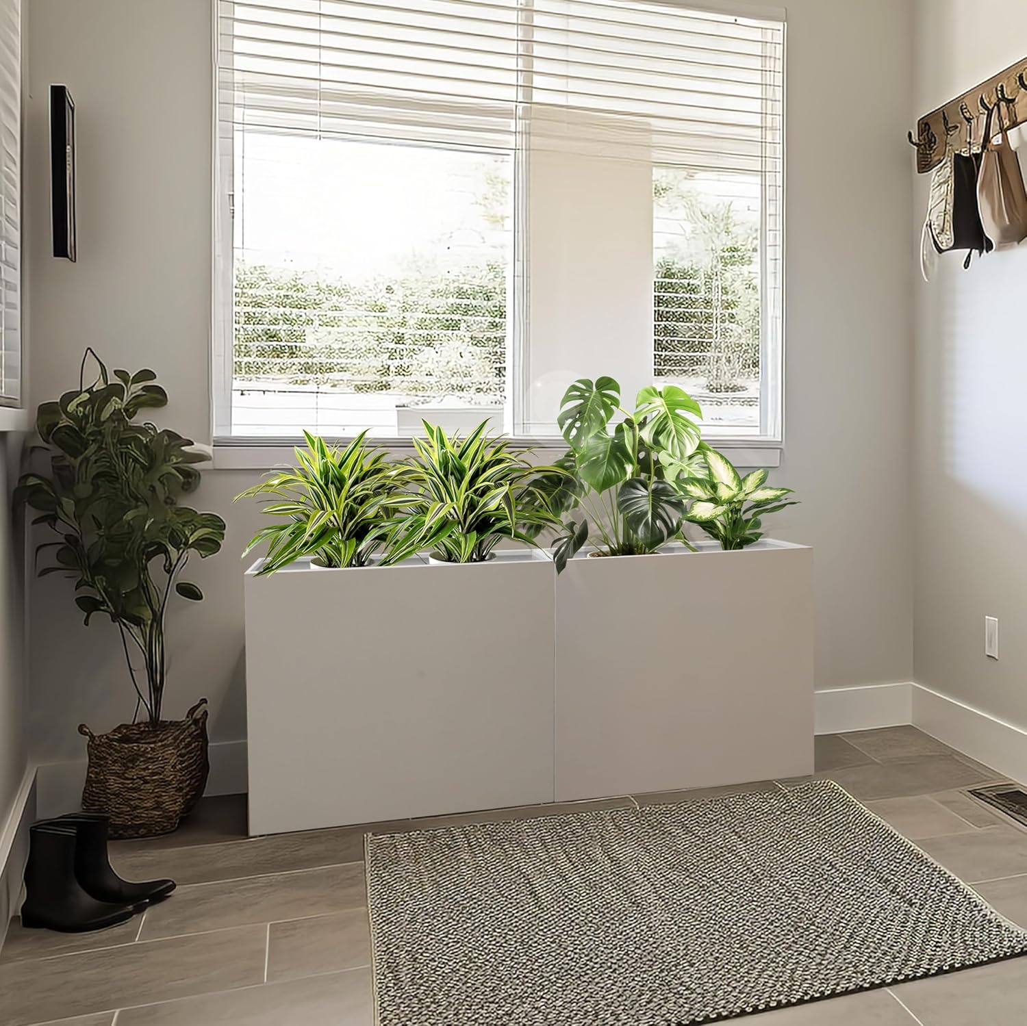 - WIDELY APPLICABLE - The White sleek metallic finish adds a touch of modern sophistication to any space, whether it's your garden, patio, or living room.This rectangular flowerpot serves as a beautiful accent.