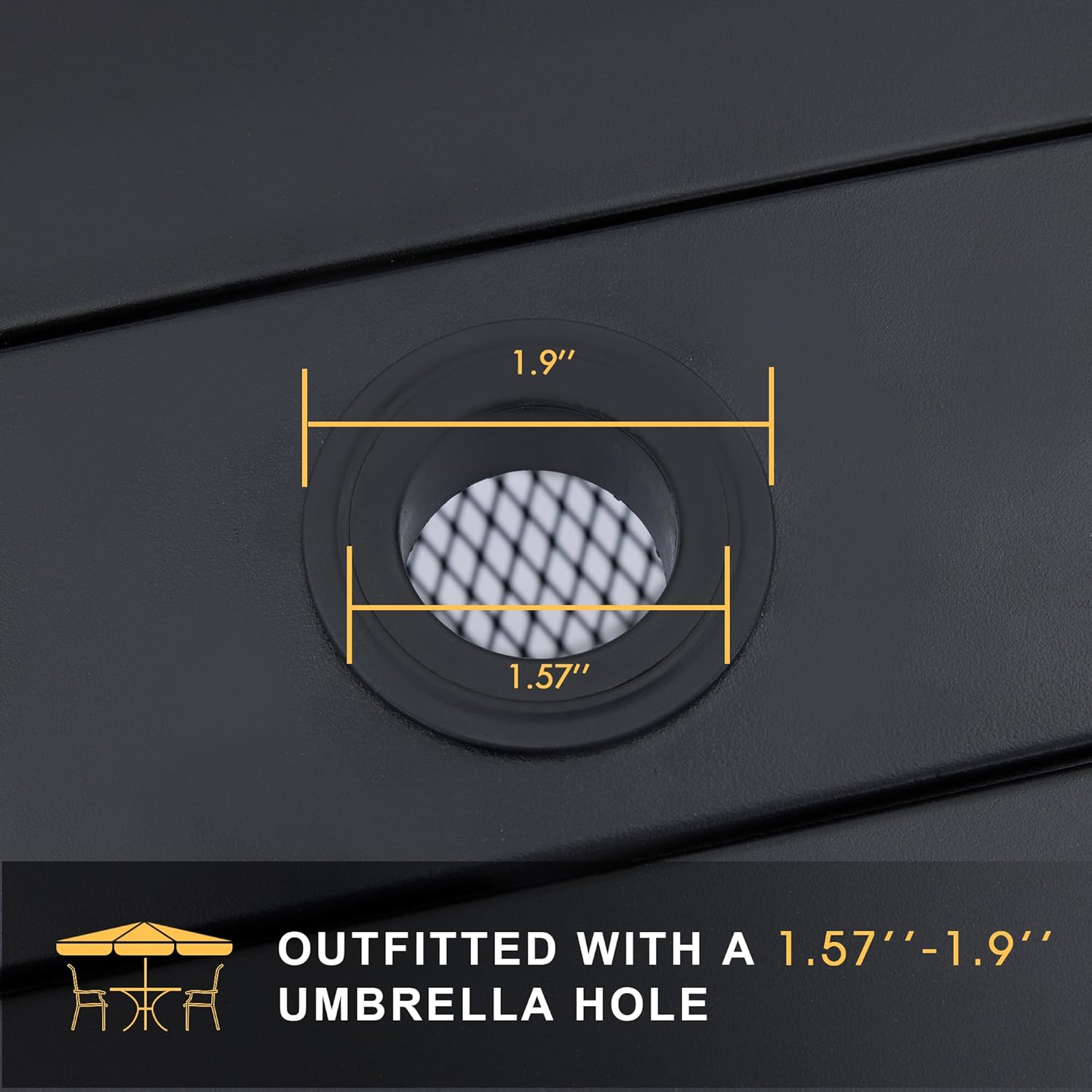 - 【Square Patio Table】Patio table set features a powder-coated frame, the bent leg design serves better stability and greater aesthetics, outfitted with an umbrella hole (1.9", hole cover included), opening to secure an umbrella to protect your food and guests from the bright sun