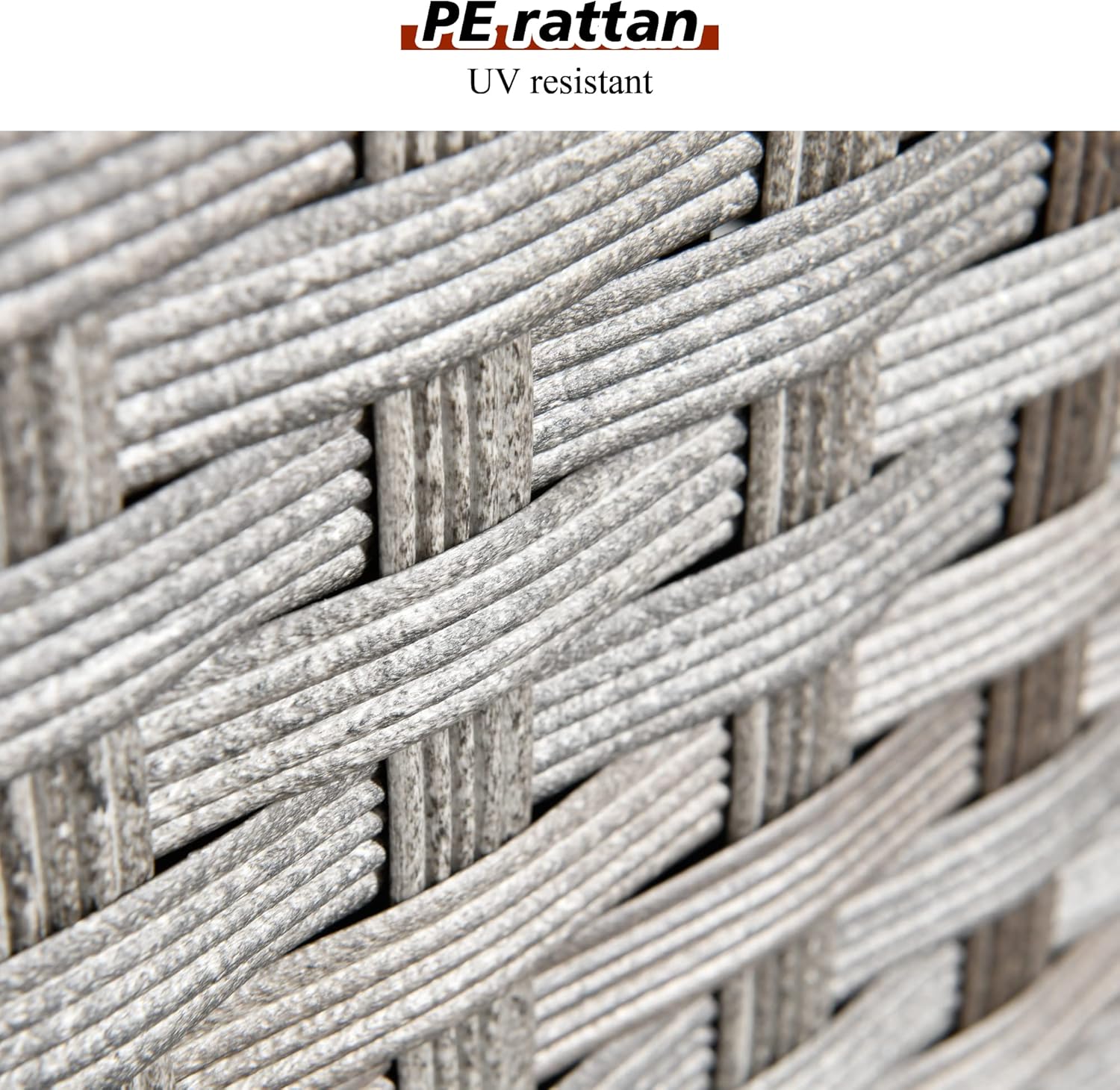 • Weather Resistance: PE strengthen wicker UV treated for long lasting. Cushions with yarn dyed woven cover features with UV-resistance, water drops/spilt resistance and good ventilation, resists water drops, coffee spilt. Unlike cheaply made thin print fabric, yarn dyed woven fabric got beautiful texture