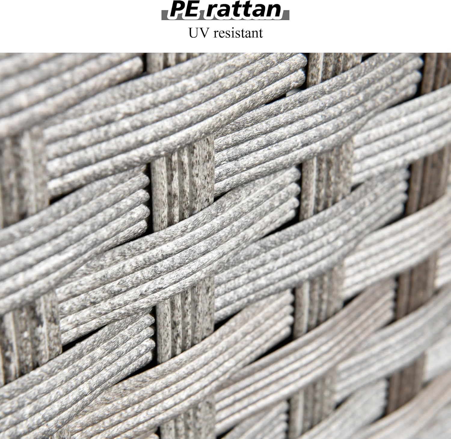 - Weather Resistance: PE strengthen wicker UV treated for long lasting. Cushions with yarn dyed woven cover features with UV-resistance, water drops/spilt resistance and good ventilation, resists water drops, coffee spilt. Unlike cheaply made thin print fabric, yarn dyed woven fabric got beautiful texture