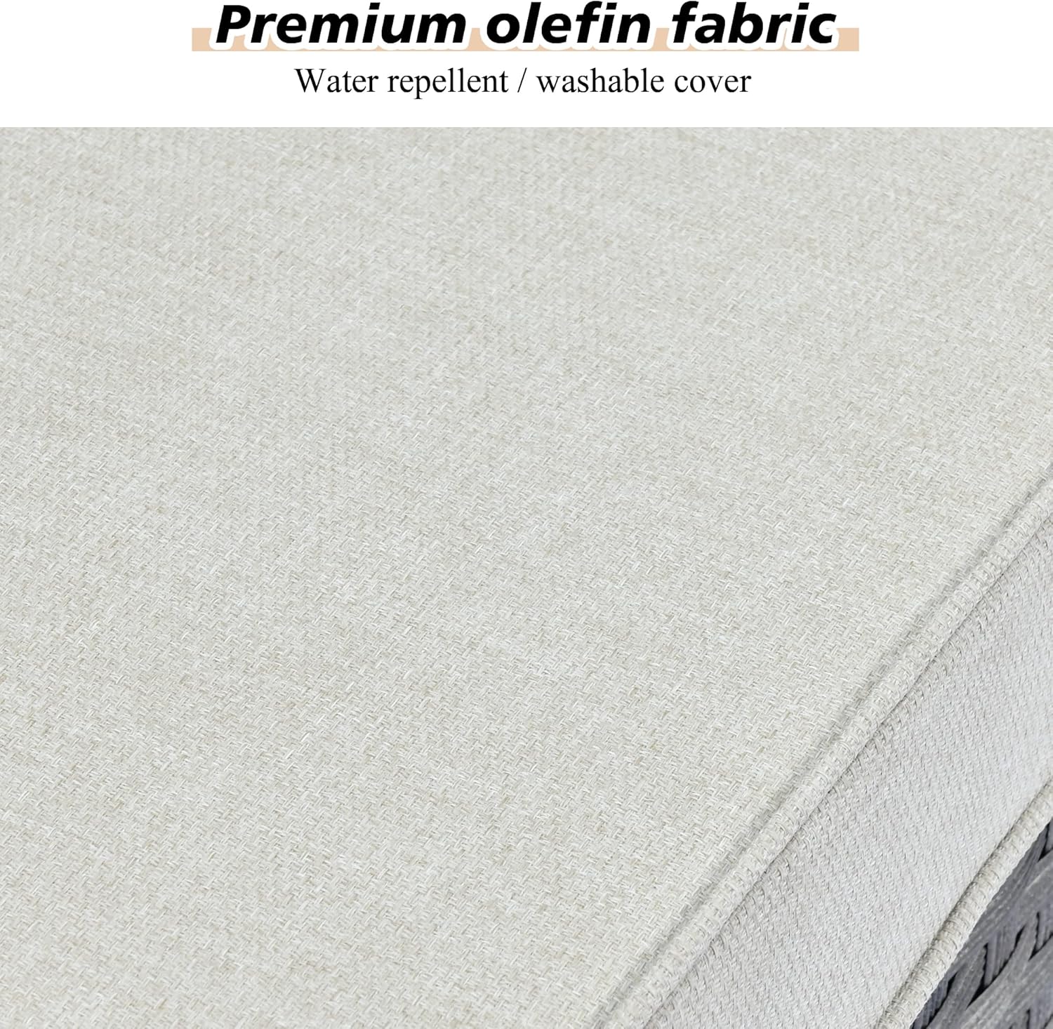 • Weather Resistance: PE strengthen wicker UV treated for long lasting. Cushions with yarn dyed woven cover features with UV-resistance, water drops/spilt resistance and good ventilation, resists water drops, coffee spilt. Unlike cheaply made thin print fabric, yarn dyed woven fabric got beautiful texture