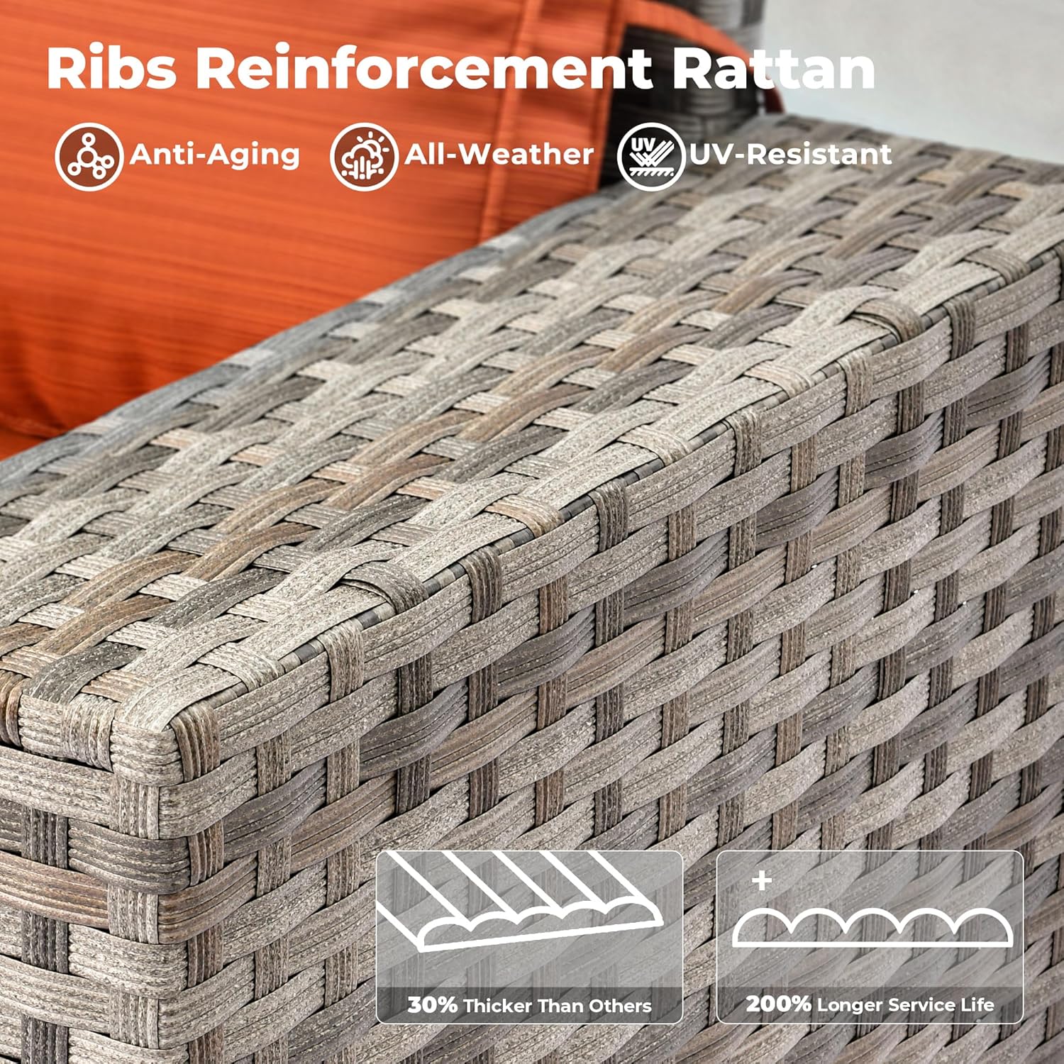 - All-weather Wicker Rattan: Our outdoor sofa sets have very durable PE wicker rattan for all-weather use and a natural texture with good coloring. The high-quality patio seating made of powder coated steel frame ensures good strength and stability