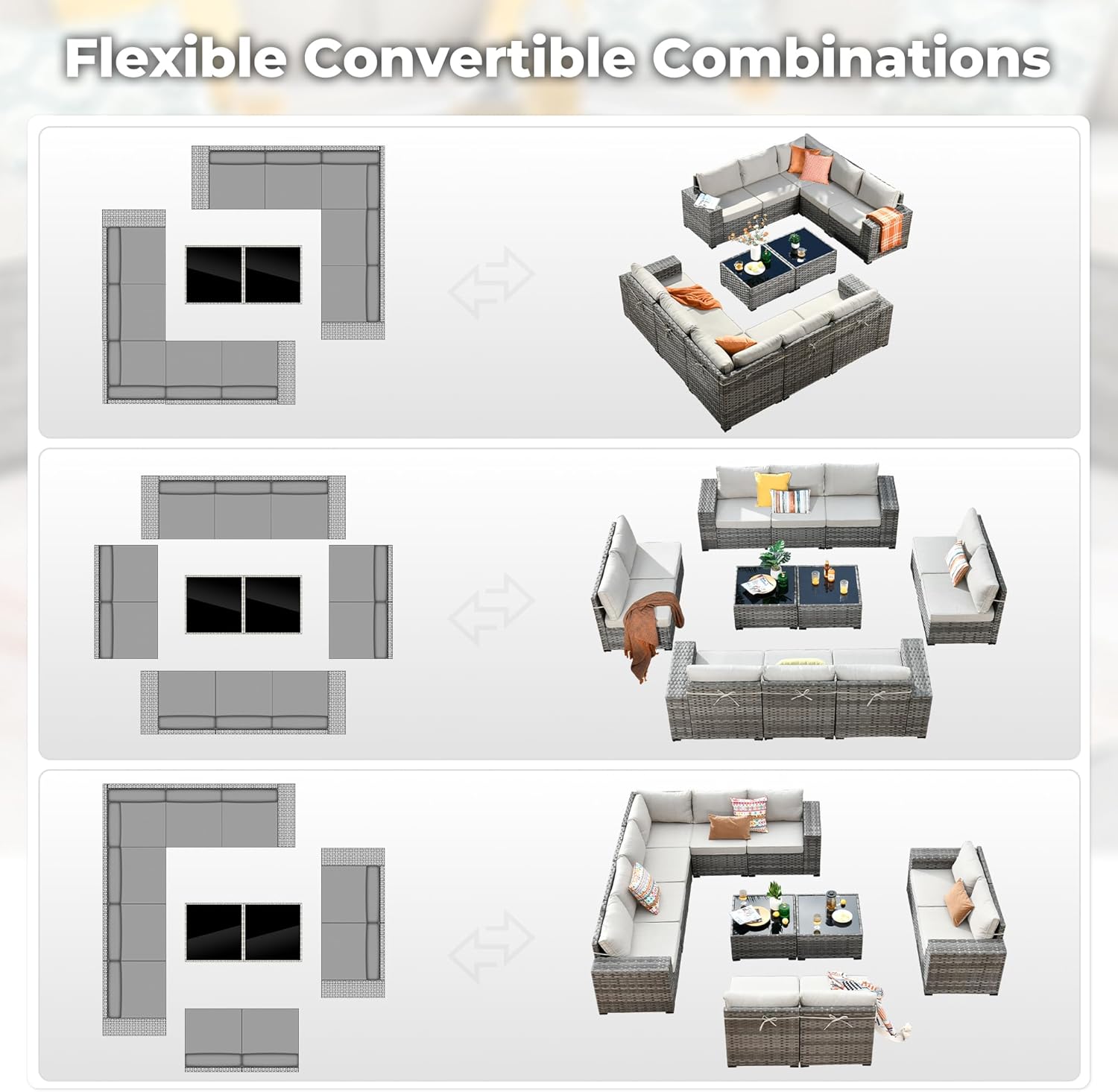 - Modular Combination: Outdoor sectional sofa set can be separated into 10 single seats, which can be freely combined with the included connecting clips to create the outdoor seating arrangement you want to fit into a variety of spaces