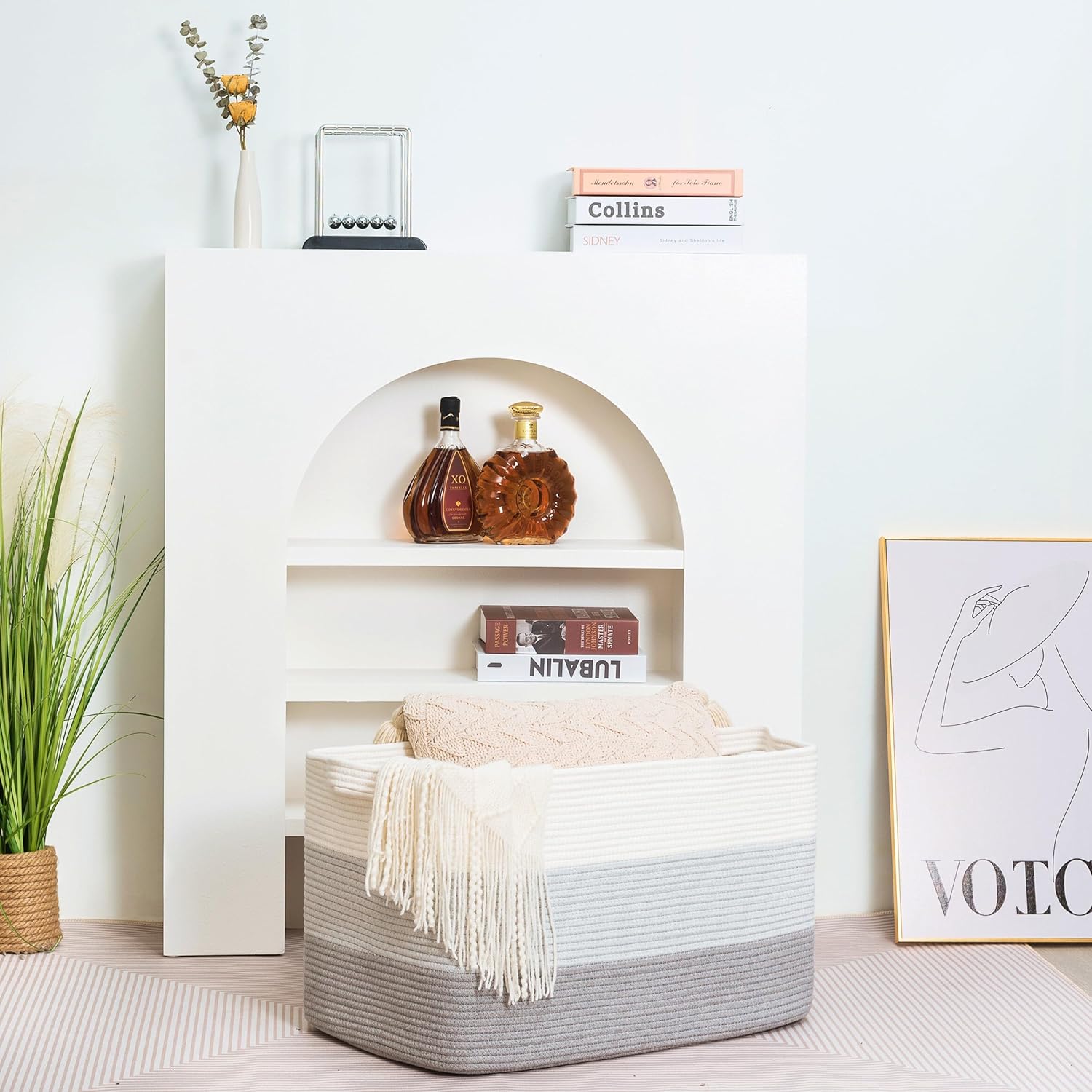- Decorative Storage Baskets for Home Decor - A stylish, practical alternative to other boring storage solutions. Not only will our large storage baskets help you get organized, their sleek, sophisticated shape and neutral colors will complement any decor and any room: the bathroom, playroom, bedroom, living room, laundry room, mudroom, home office, entryway & more.