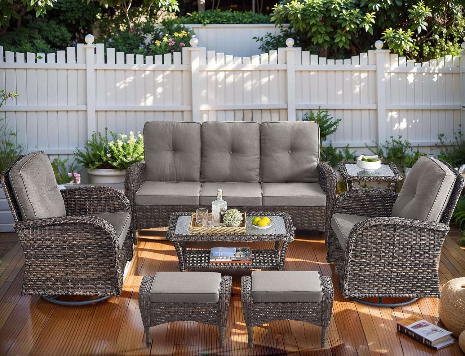 - Multi combination and function:This series of outdoor furniture set includes a variety of combinations, including functions such as swivel and glider chairs,rocking chairs,glider loveseat,suitable for a variety of scenarios,garden,balcony,deck,patio,porch,poolside,yard,corridors,sunrooms,etc.