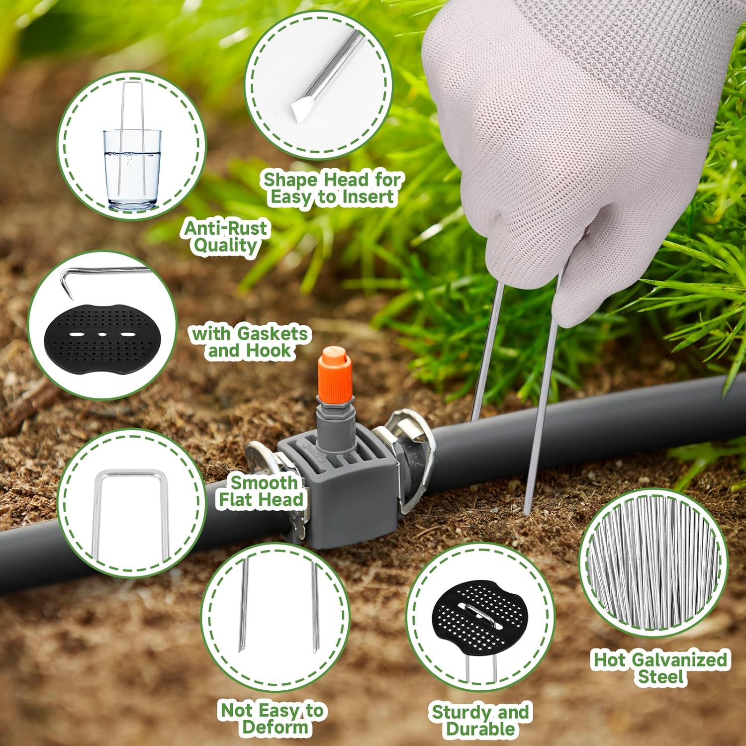 - 【Packaging Composition and Size 】Pack of 100, 6inch long, 1inch wide, 11 Gauge garden stakes. In addition, we also equipped it with 1 pick hook and 100pcs plastic fixing gasket. The fixing gasket can make your project installation firmer, and the pick hook can pull the Landscape Staples out easily. Packed in thick corrugated carton to avoid damage during transportation