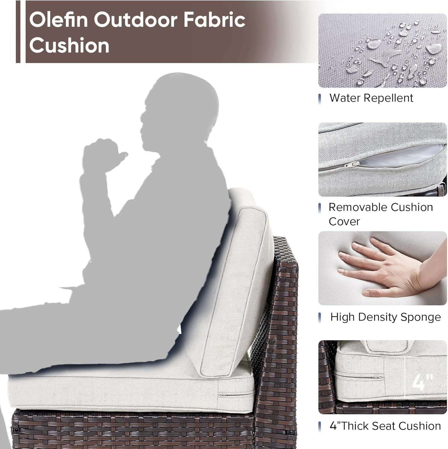 - Free Combination:Our patio furniture set includes individual chairs, corner chairs, and curved double seat sofas and ottomans. you can freely combine these products to meet your needs and space size.Any quality problem please contact us for replacement.