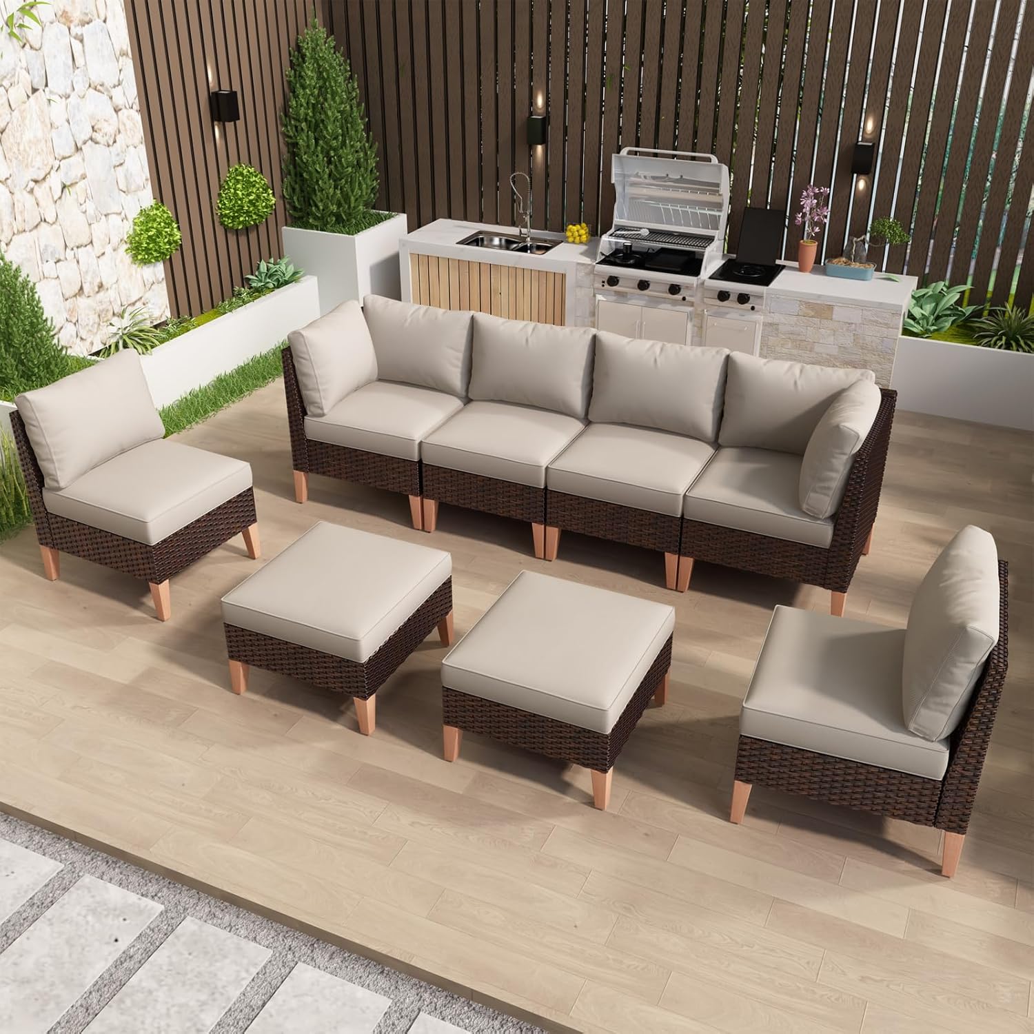 - Free Combination:Our patio furniture set includes individual chairs, corner chairs, and curved double seat sofas and ottomans. you can freely combine these products to meet your needs and space size.Any quality problem please contact us for replacement.