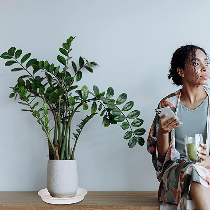 6 Pack of 8 inch Plant Saucer, Heavy Duty Plastic Plant Drip Trays 8" Round, Plant Dishes Saucer, Flower Plant Water Trays for Indoors, Plate for Planter 7-9" (8 inch, Creamy White)