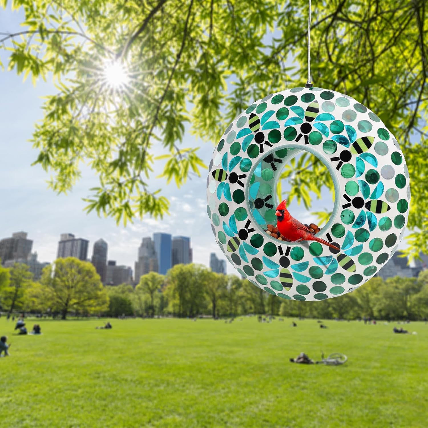 - Hanging Bird Feeder: Mosaic hang bird feeders for outdoors is made of strong mortar and glass. Birds can eat from the rim or hop inside during bad weather