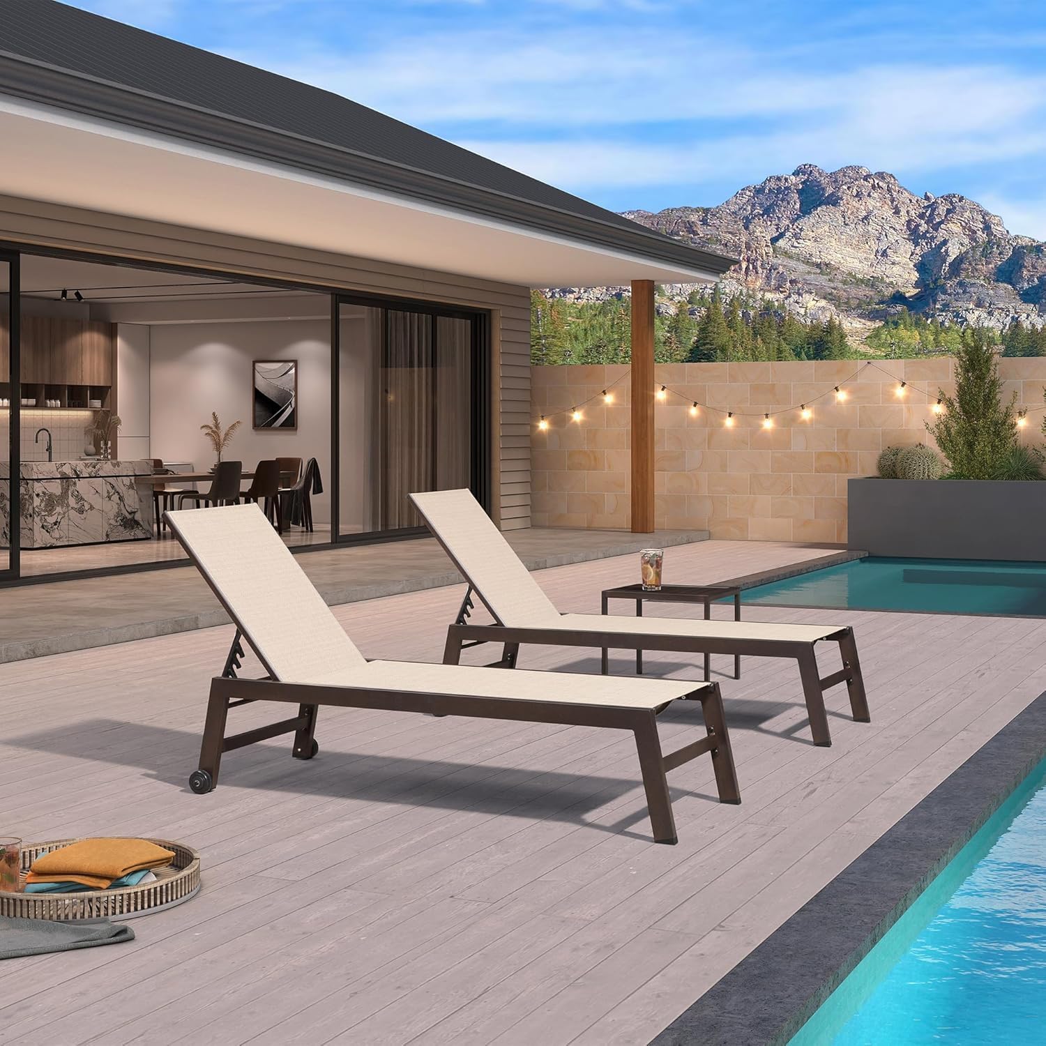 - COMFORTABLE FABRIC: This Patio Chaise Lounge features a sunbathing textilene design, providing a comfortable and relaxing lounging experience. Quick-dry and fade-resistant, perfect for poolside or patio use.