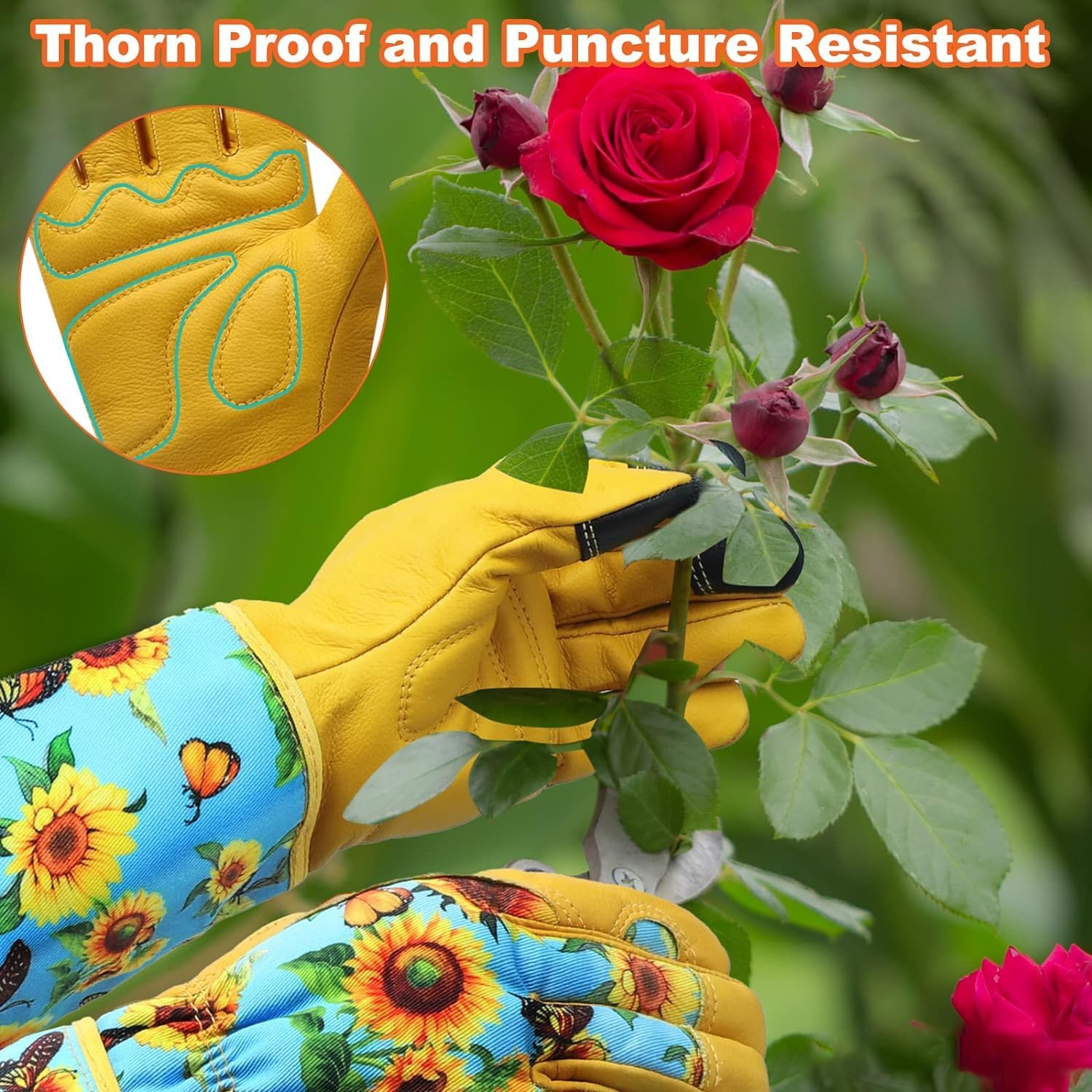 - Rose Gloves Gardening Thorn Proof:Our garden gloves are carefully double thread sewn, with soft palm and reinforced fingertip provide additional wear-resistant protection. The elastic wrists that can be fixed the long gardening gloves, preventing them from slipping and providing a perfect fit. The extended adjustable cuffs protect the forearm from cuts and scratches.