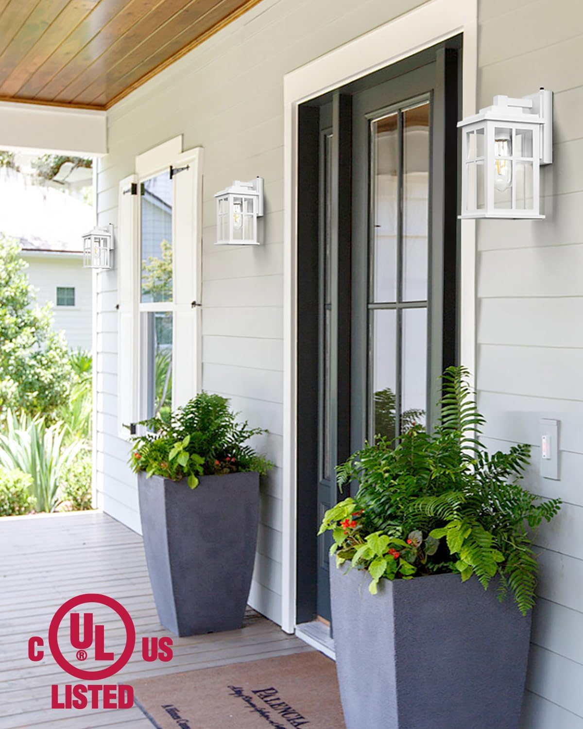 White Outdoor Wall Lights, Dusk to Dawn Exterior Lighting Fixtures, Waterproof Outside Lights for House, Garage, Garden, Entryway, Doorway, Anti-Rust, Modern Style, Tempered Glass