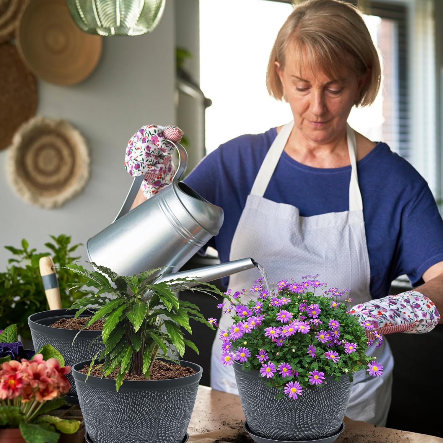 - 【Weather Resistant】Our plant pots are made of sturdy recyclable plastic. Allow you to enjoy these plastic planters for outdoor plants in all types of weather. Built to withstand intense sun and harsh winter temperatures, free from fade, frost, crack and peel damage so you can use it indoors and outdoors freely.
