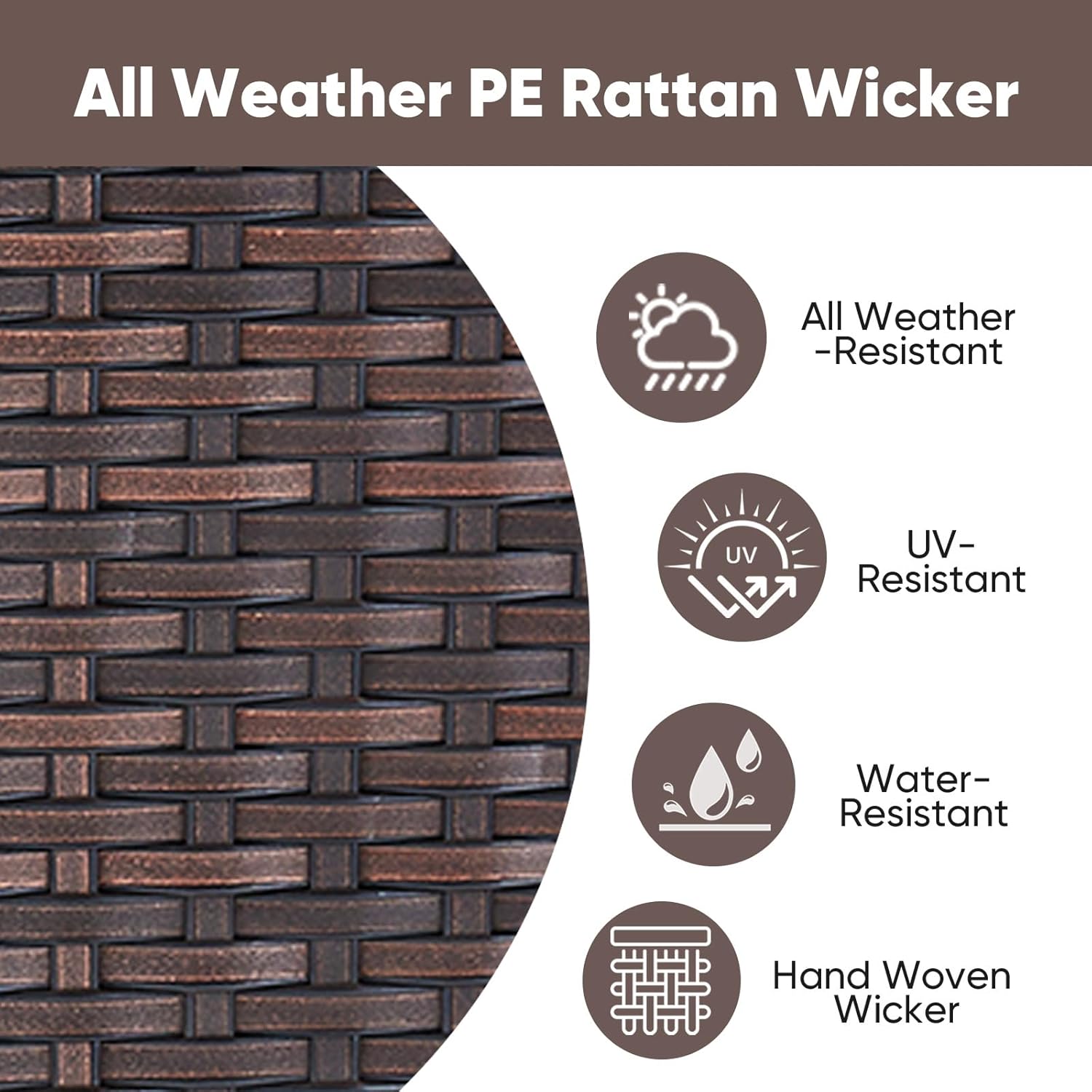 - Durable Sturdy Construction:All made with anti-rust powder-coated metal frame and high-quality Handwoven PE wicker which makes this patio furniture set resistant to UV and all weather,The upgrated trapezoidal feet provides strong support,with the non-slip plug, it will help you to avoid scratches on the floor when you move the furniture around.