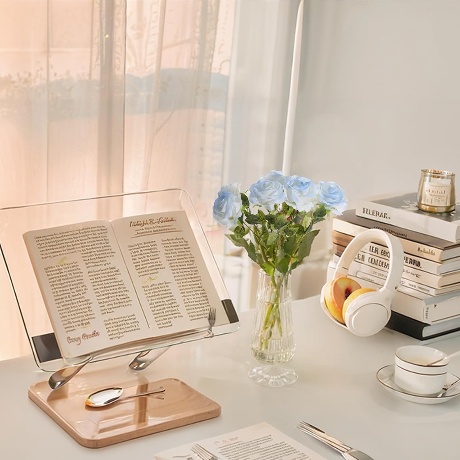 Ice Blue Artificial Roses Fake Flowers Not Bend The Peduncle with Stems for DIY Wedding Bouquets Bridal Shower Centerpieces Arrangements Tables Decorations 12pcs