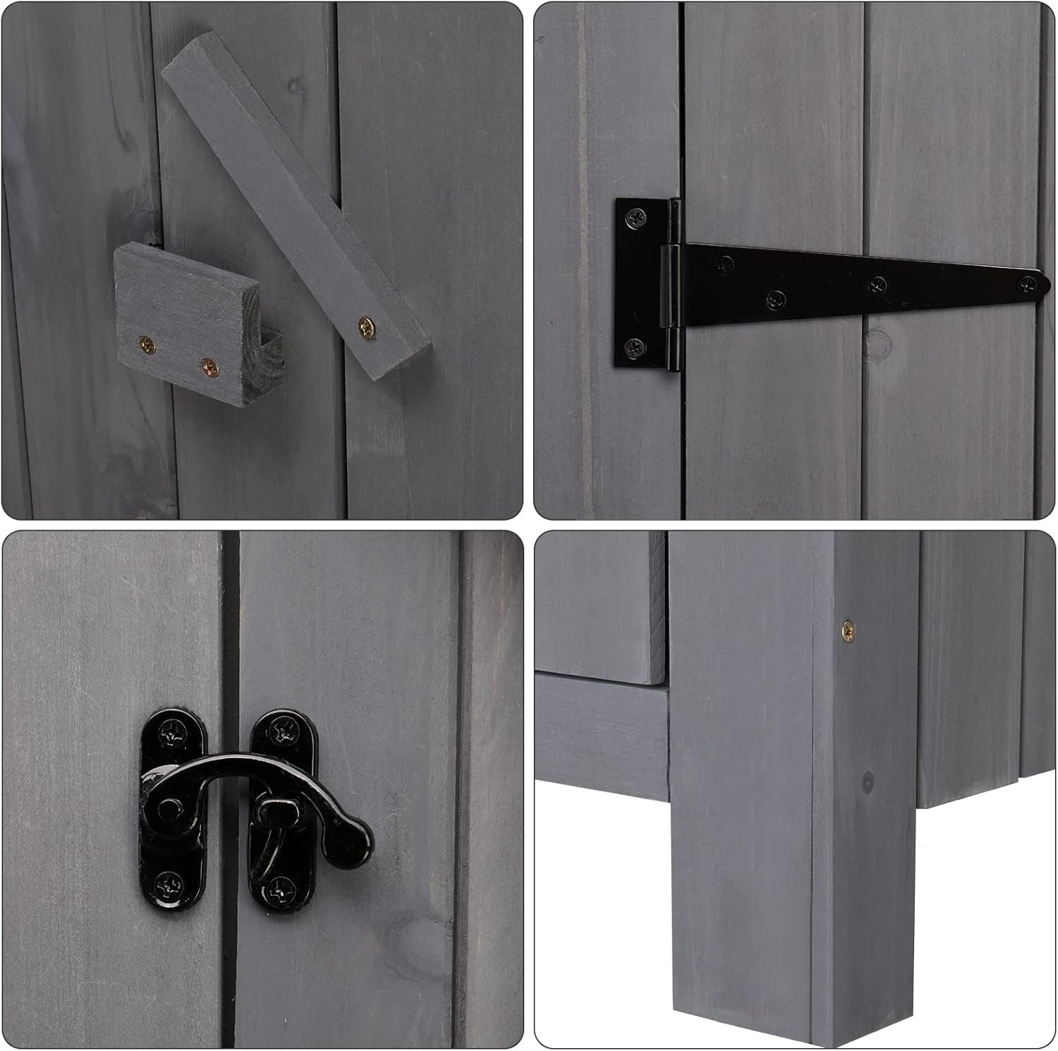 Outvita Outdoor Storage Shed, 70 Inch Wooden Garden Storage Cabinet, Waterproof Tool Storage Cabinet with Lockable Door, Wooden Garden Shed Outdoor Shed for Garden Backyard Lawn(Grey)