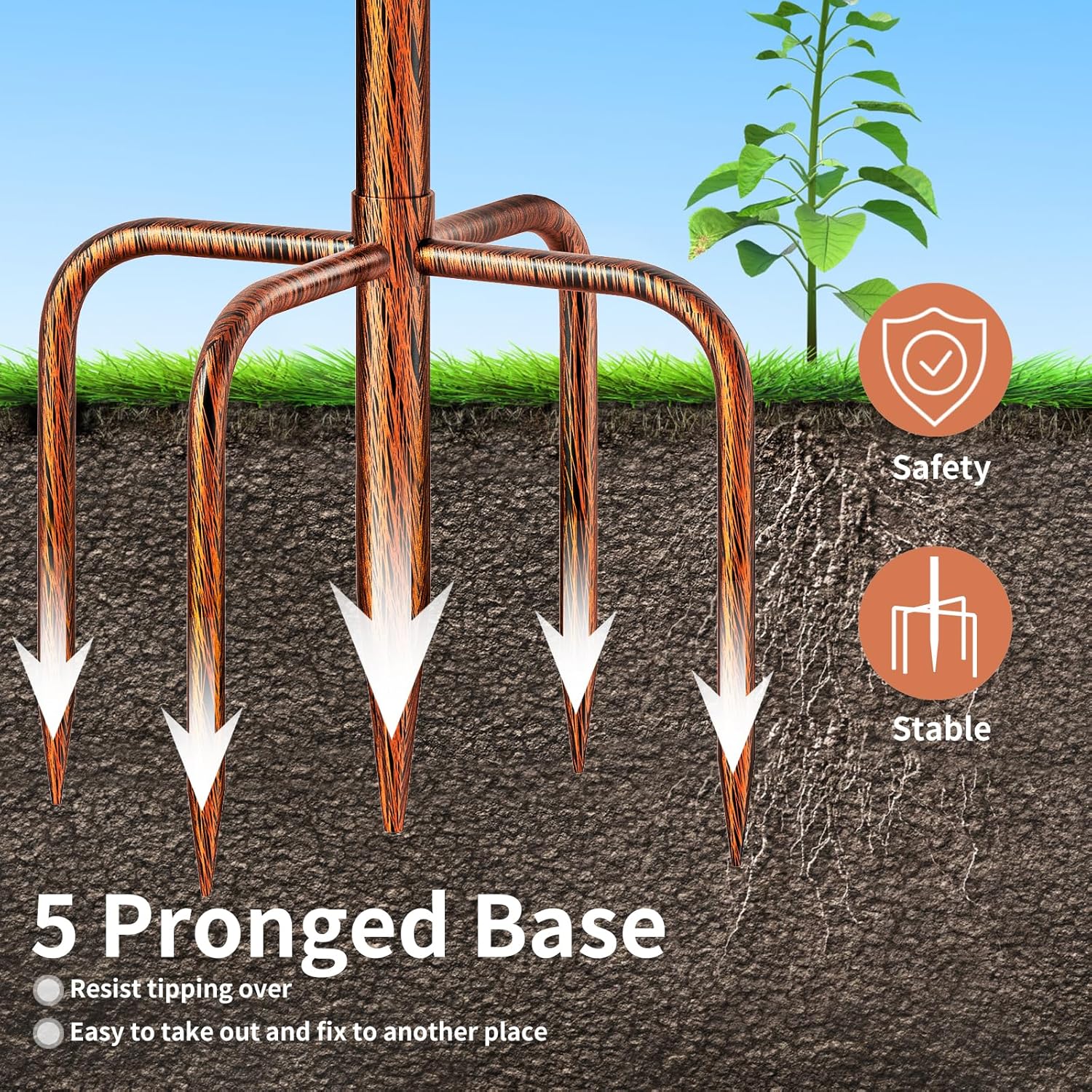 - 【Upgraded 5-pronged Design】The garden birdfeeder is heavy duty steel stake with 5 solid prongs makes this bird bath stay in the soil of your garden upright and firmly. This birdbath is uneasy to bend, break or fracture, keeping your yard or garden full of songbirds all year long.