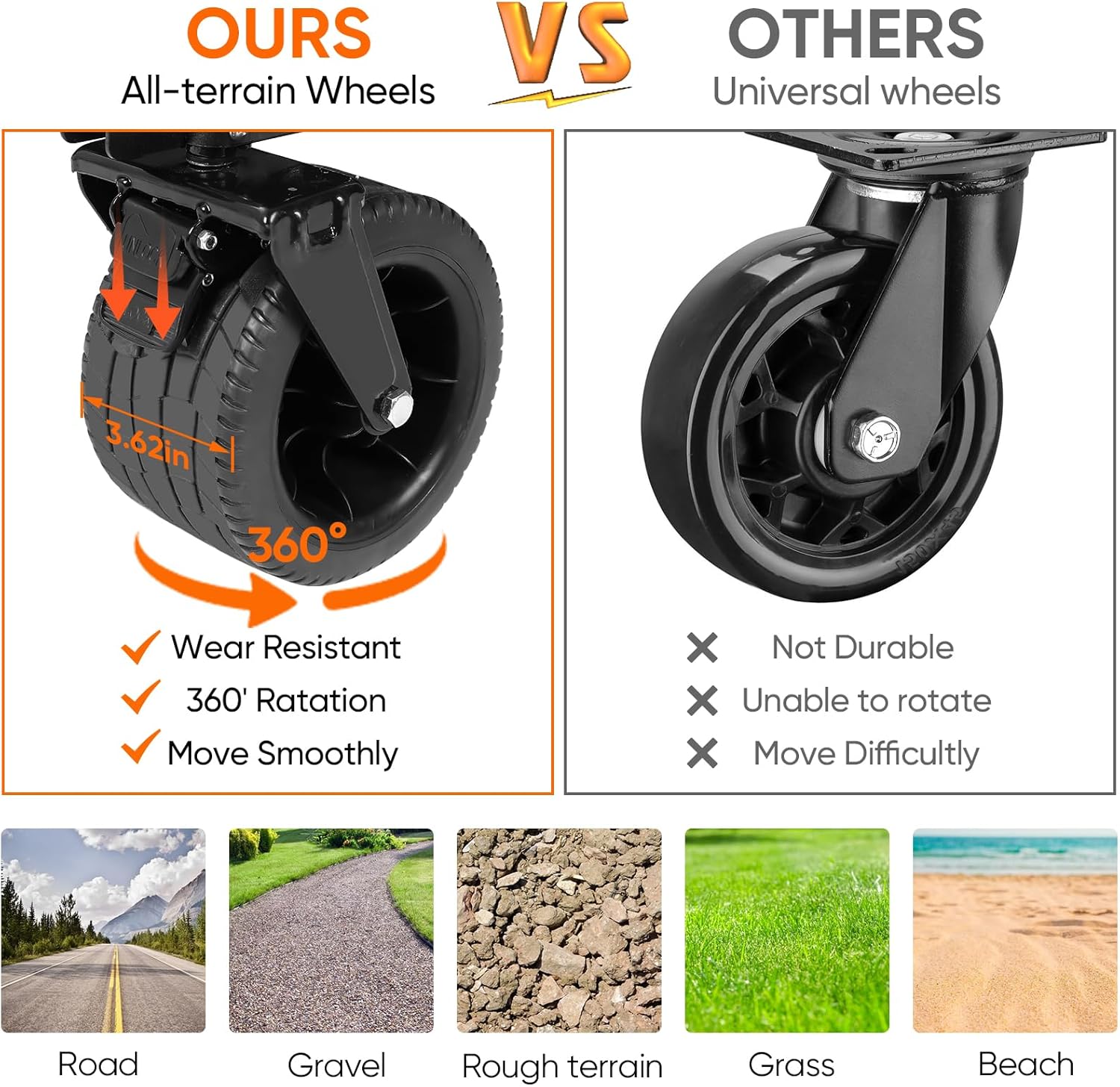 - 【Extra Wide All Terrain Wheels】Our Wagon is equipped with 6.5" diameter all-terrain wheels, ensuring a smooth ride on navigating diverse terrains.360-degree freely rotating front wheels are equipped with brakes to accommodate wild terrains, providing excellent anti-slip performance for a smooth pull and easy transport. The Foldable Wagon Cart is equipped with adjustable handles, you can choose to adjust it according to your needs