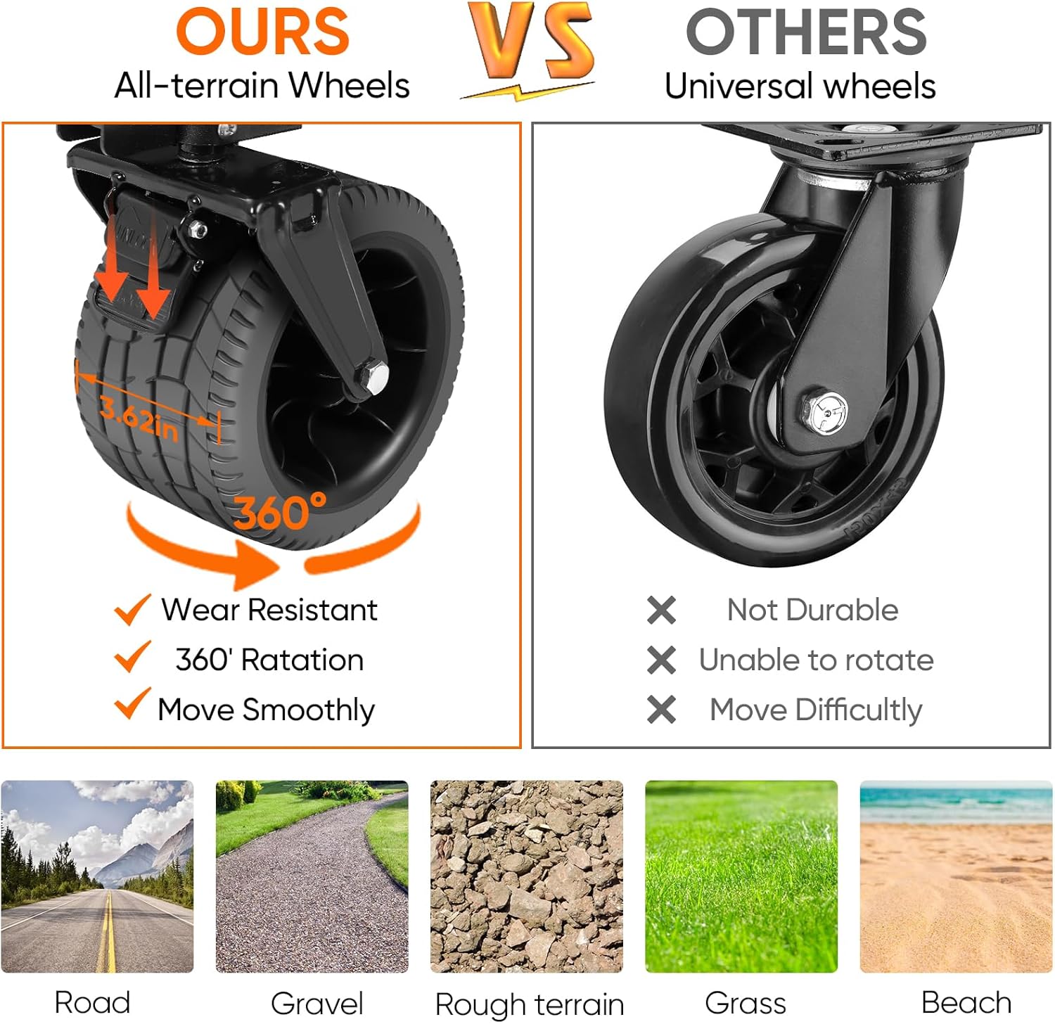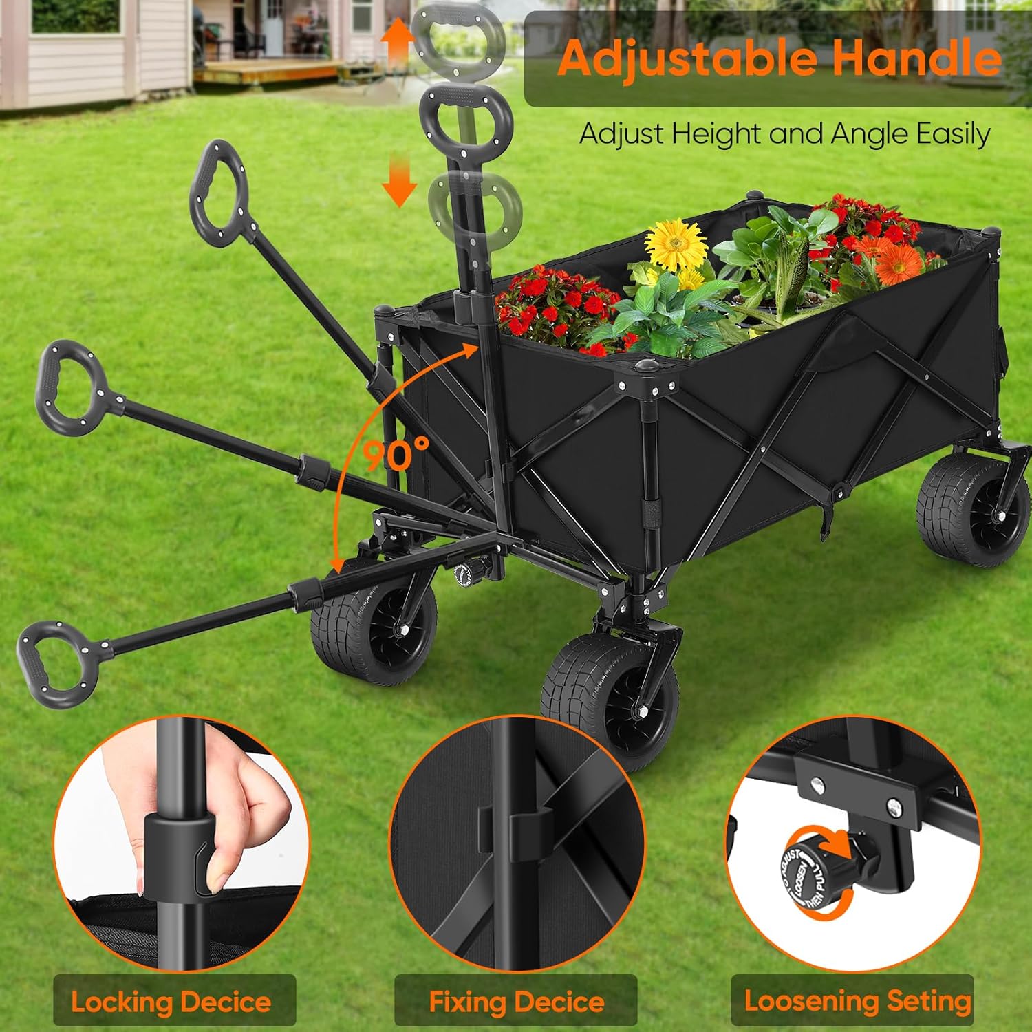 - 【Extra Wide All Terrain Wheels】Our wagon is equipped with 6.5" diameter all-terrain wheels, ensuring a smooth ride on navigating diverse terrains.360-degree freely rotating front wheels are equipped with brakes to accommodate wild terrains, providing excellent anti-slip performance for a smooth pull and easy transport. The foldable wagon cart is equipped with adjustable handles, you can choose to adjust them according to your needs