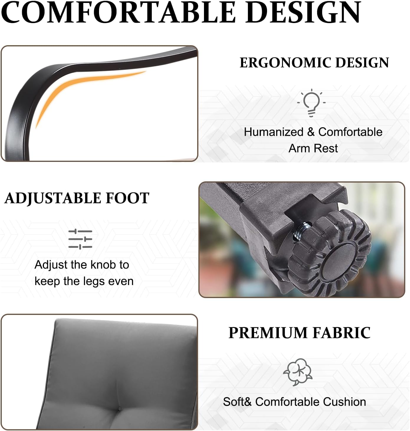 - High elastic cushion makes you more comfortable when using, each chair is equipped with back pillow to add more support and relax. Anti-slip black rubber strap on each foot for maximum foot grip and against scratch the floor