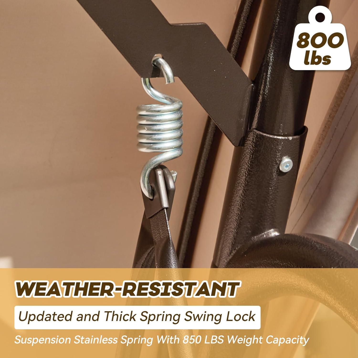 - ăSturdy and Safe Constructionă: The maximum weight capacity of porch swing is 800 pounds, our glider swing is designed for 3 adults to sit comfortably. The swing outdoor has a reliable buckle on backrest, ensuring stability and preventing any unwanted swinging. The double protection of 3 seat garden swing is designed for preventing accidental tipping.