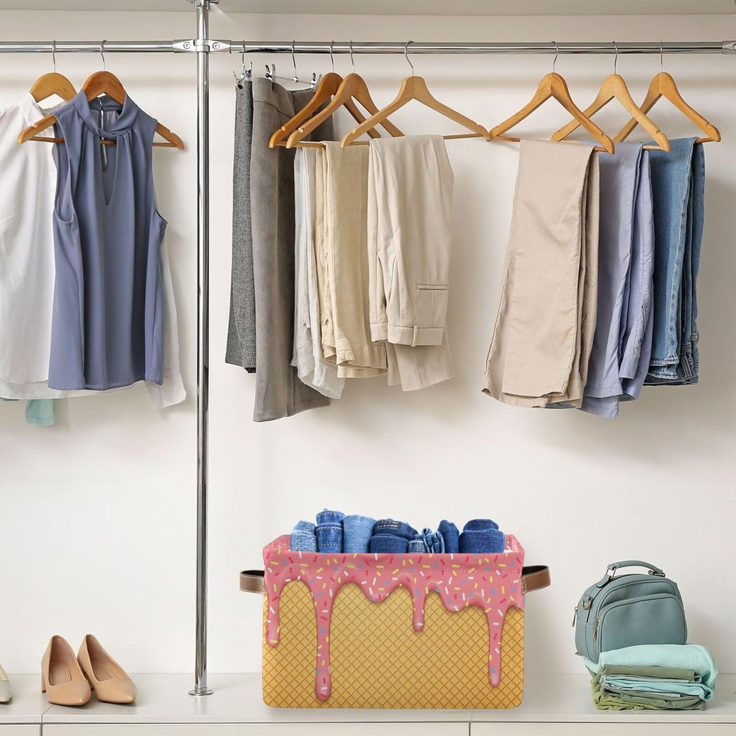 Ice Cream Rectangular Storage Basket Organizer Bin Shelf Baskets For Clothes Gifts For Home Office Dorm