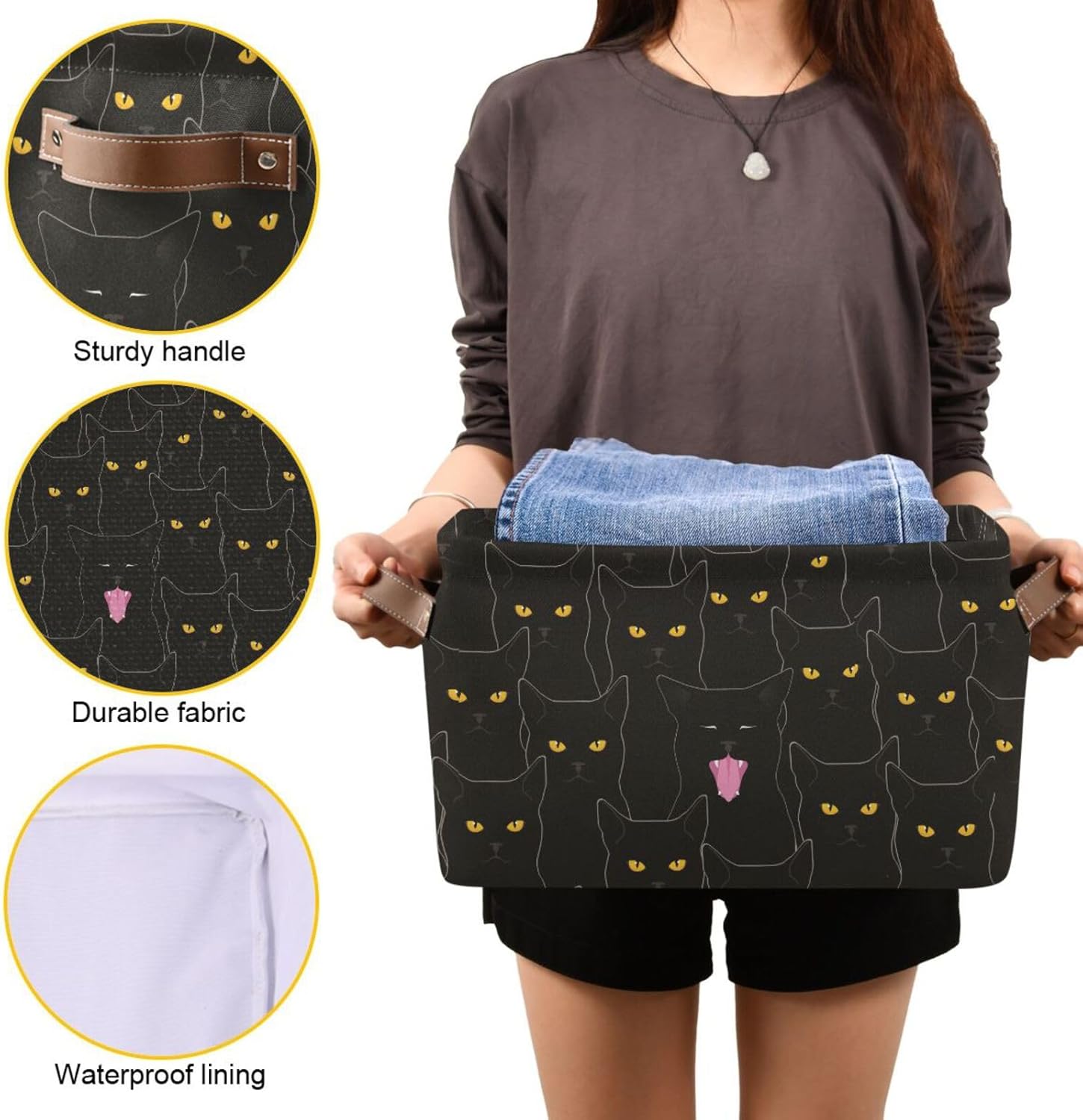 - Materials: The Reusable Storage Organizer Box Is Made Of Polyester, Lightweight With Dual Faux Leather Handles.Strong Handles On Both Sides For Easy Transport.And It Can Be Put Up And Folded In Seconds.