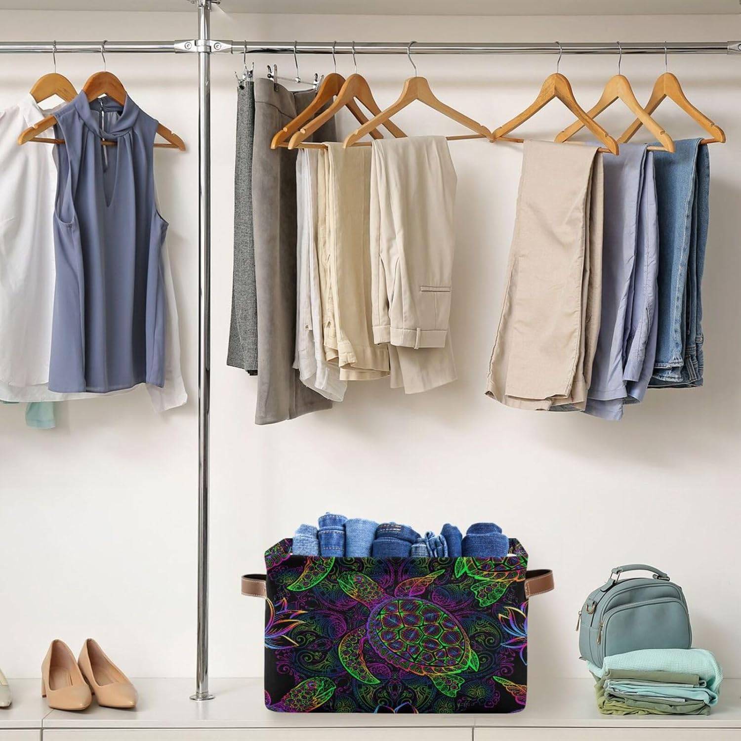 Rectangular Storage Basket Neon Animal Turtle Tortoise Organizer Bin Shelf Baskets For Clothes For Home Office Dorm