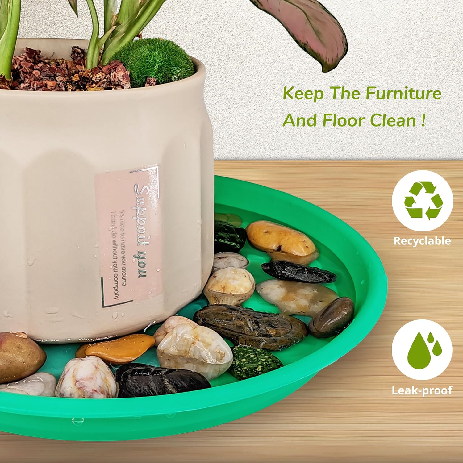 - Optimal Plant Drainage: These plant pot saucers help you catch water from the plant pot drainage hole. help protect wooden floors, carpets, and tabletops from water drainage and soil spillage. You can decorate the plant drip tray with colorful pebbles