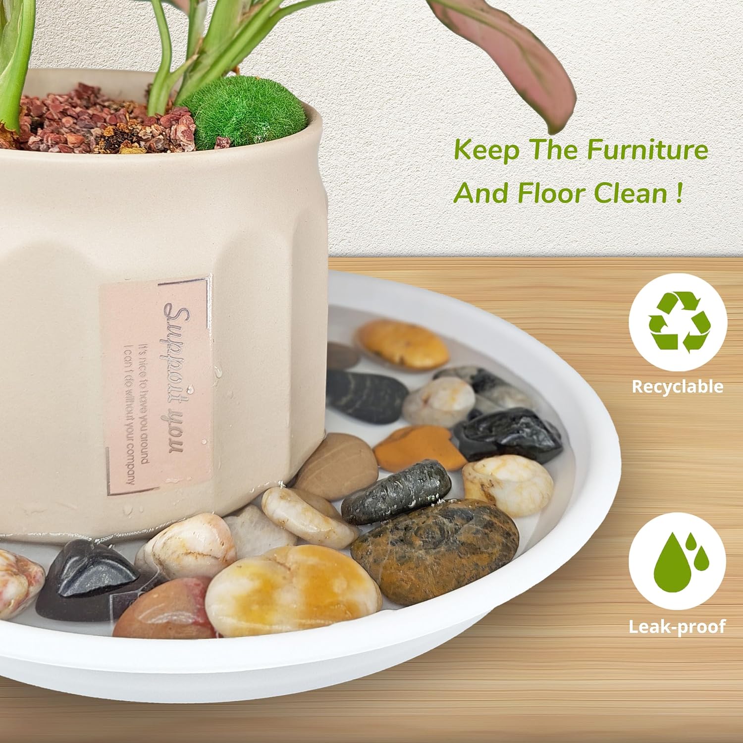 - Optimal Plant Drainage: These plant pot saucers help you catch water from the plant pot drainage hole. help protect wooden floors, carpets, and tabletops from water drainage and soil spillage. You can decorate the plant drip tray with colorful pebbles