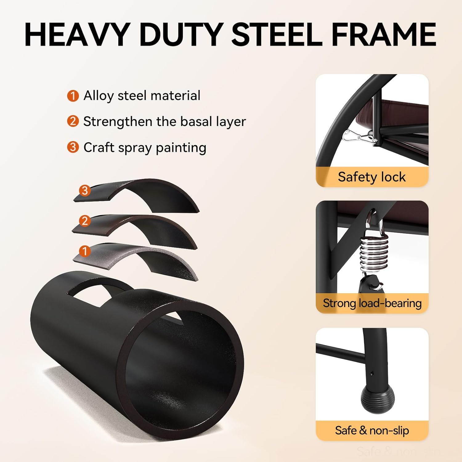 - ă760LBS STABLITYăThe FUNG YARD Porch Swing has a strong and steel frame, with a weight capacity of up to 760 pounds. It has sturdy steel fittings, hooks, and seat tubes for stable support. The Patio Swing also has heavy-duty spring steel for smooth and gentle swinging motion.