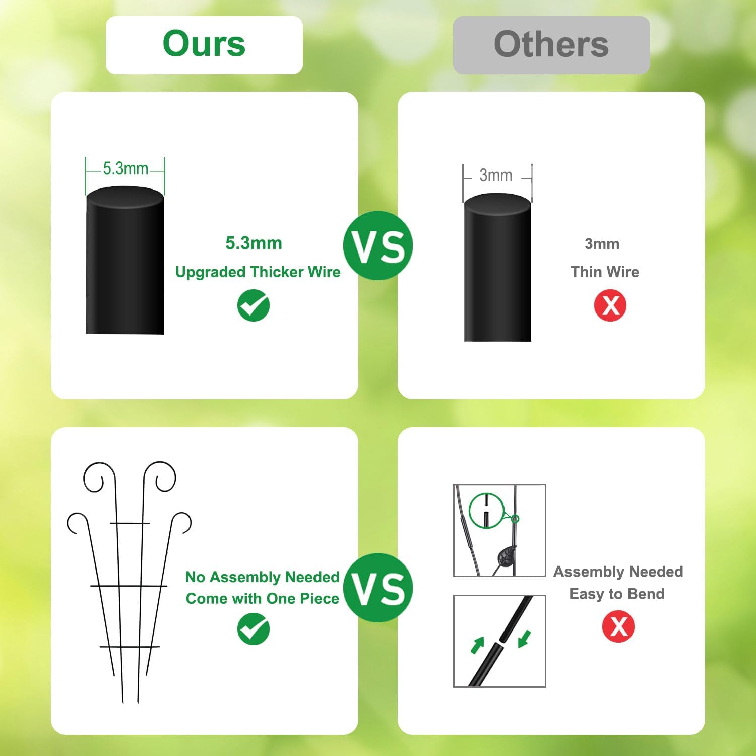 - 【STURDY & RUSTPROOF】- The trellis for potted plants is welded with thick wires, sturdy and durable structure; Decorative metal trellis is made of iron with rust proof black powder coated finish, weatherproof and can effectively support flowering vines or bushy climbing plants both outdoor and indoor