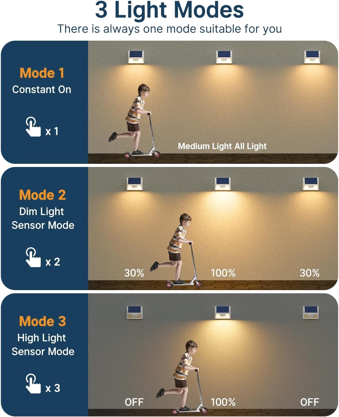 - 【3000K Warm Cozy Ambiance】: Light up your patio,balcony,yard,pathway or porch with the gentle glow of warm white LED. Enjoy a cozy and inviting atmosphere while ensuring safety. No more harsh or dazzling lights, making it easier and safer for the whole family to navigate stairs and outdoor spaces at night