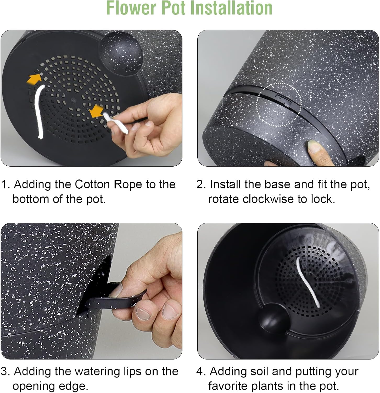 - 【Self-Watering Design】 Self-watering pots is includes a water reservoir at the bottom of the planter. This flower pots automatically supplies water to your plants as needed by a cotton rope, reducing the frequency of watering and ensuring your plants never go thirsty. The reservoir design also helps maintain a consistent moisture level, fostering optimal growth conditions.