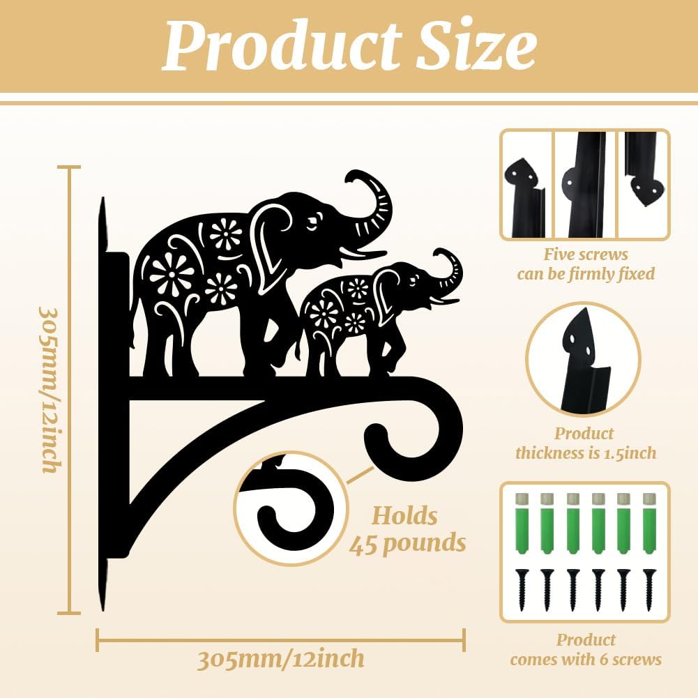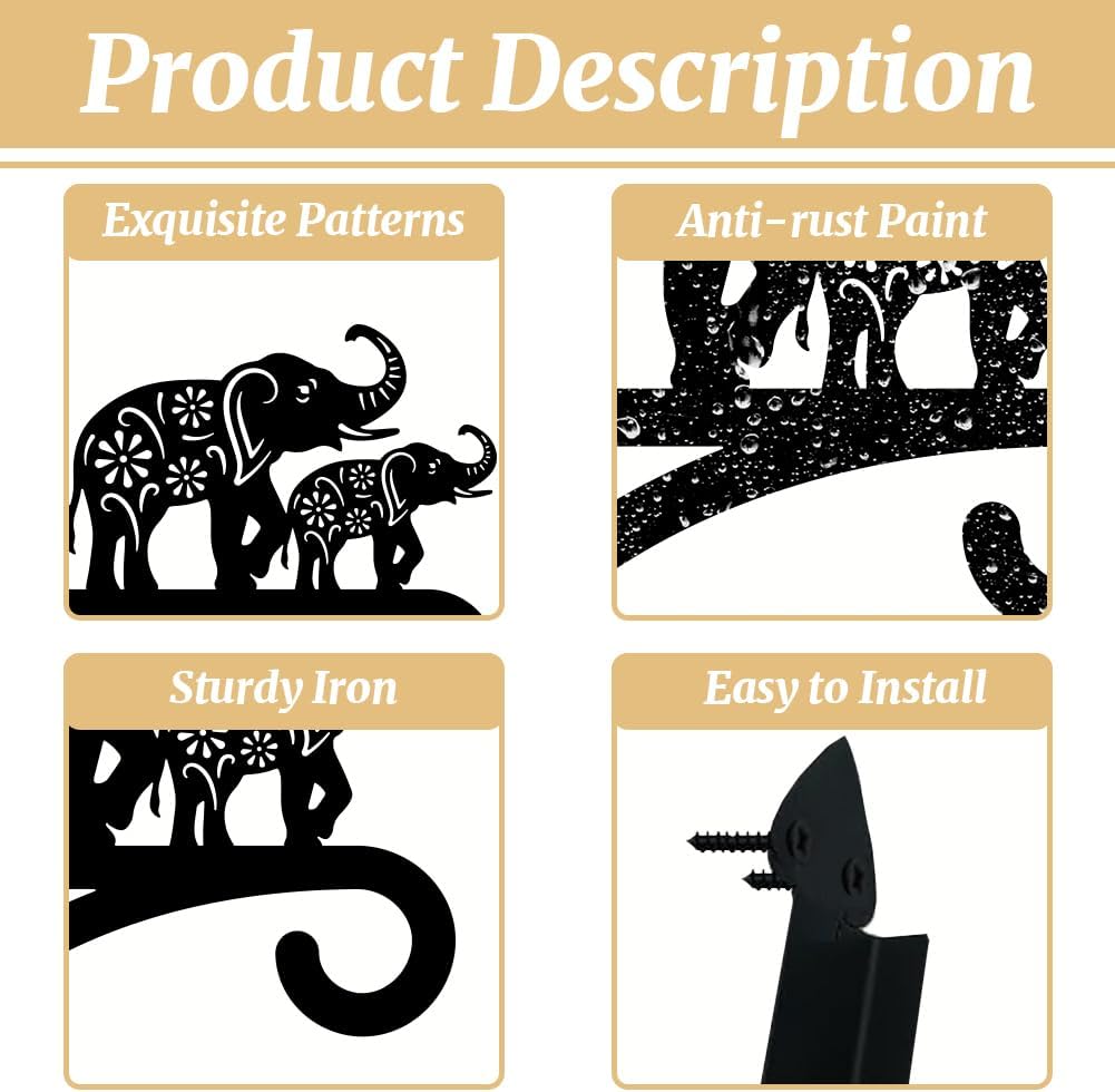 peacoblue Iron Plant Hangers Holder for Outdoor Indoor Hanging Plants Flower Fern Pots Lantern Bird Feeder Wind Chimes, 12”x14” Weather Resistant Metal Wall Hooks for Porch Garden Farmhouse(Elephant)