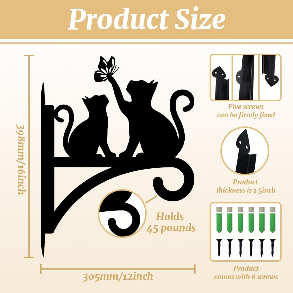 Peacoblue Iron Plant Hangers Hooks for Outdoor Indoor Hanging Plants Fern Pots, Lantern, Bird Feeder, Wind Chimes, 12”x14” Cat Weather Resistant Metal Wall Brackets Holder for Porch, Garden, Home(Cat)