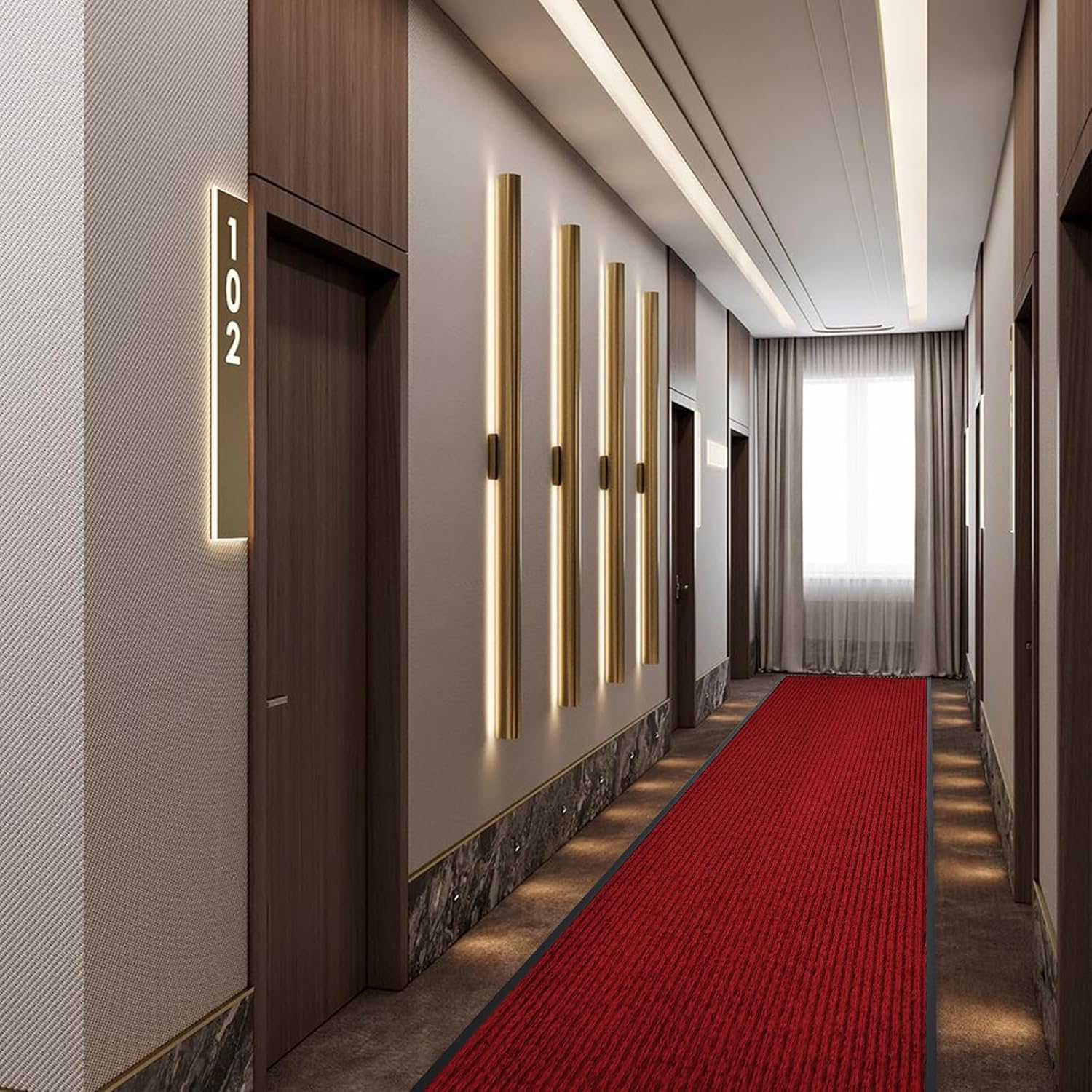 Rubber Door Mat About W3' ×L16' Heavy Duty Large Outdoor Indoor Mat Durable Entrance Doormat Waterproof Rubber Back Rugs for Home Entryway Patio Porch Office Business Areas (Wine Red)