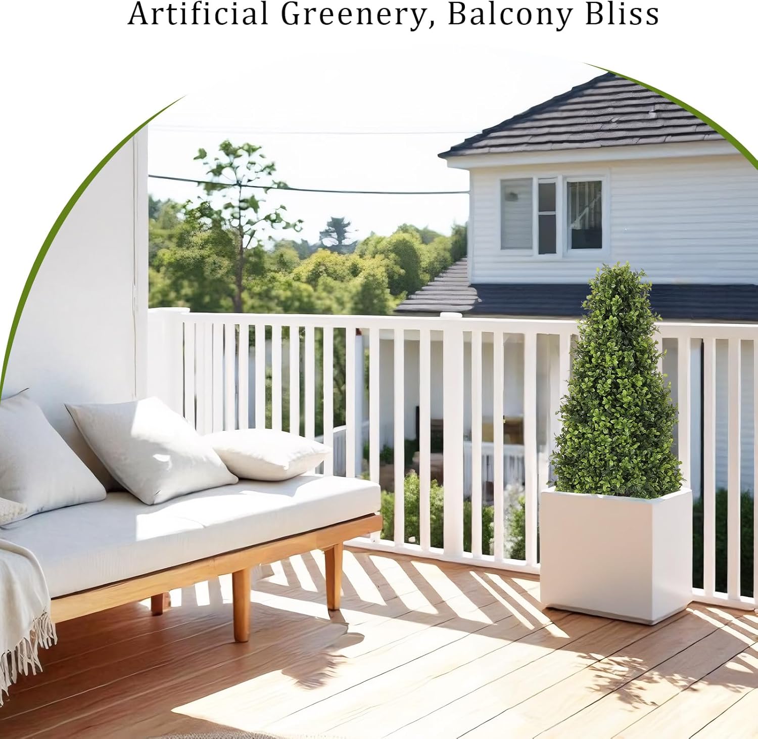 3ft Artificial Boxwood Topiary Trees (Set of 2) - UV Resistant Faux Plants Outdoor, Realistic 36" Fake Cone Bushes and Shrubs for Front Porch, Planter, Patio - Low Maintenance & Evergreen