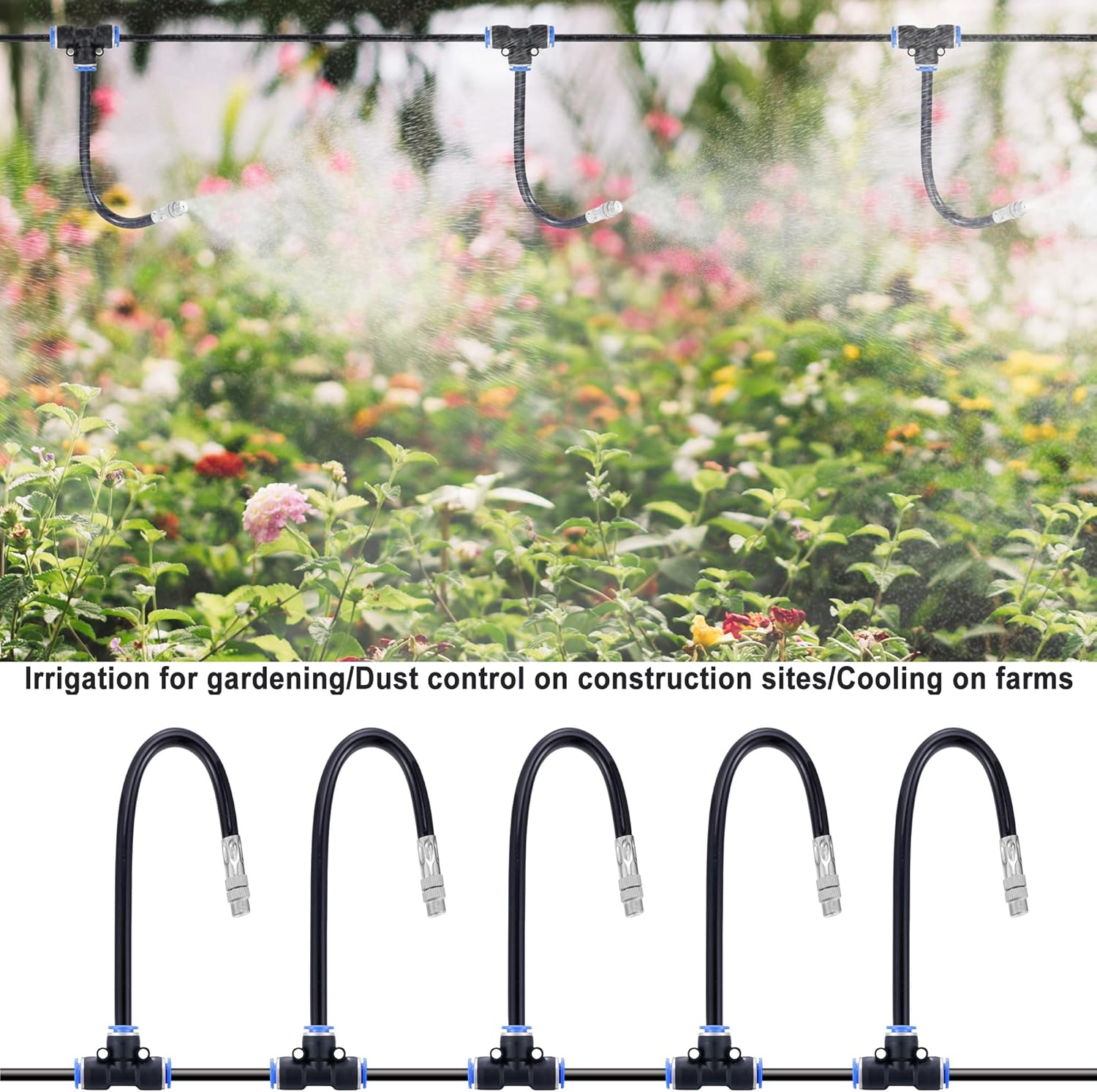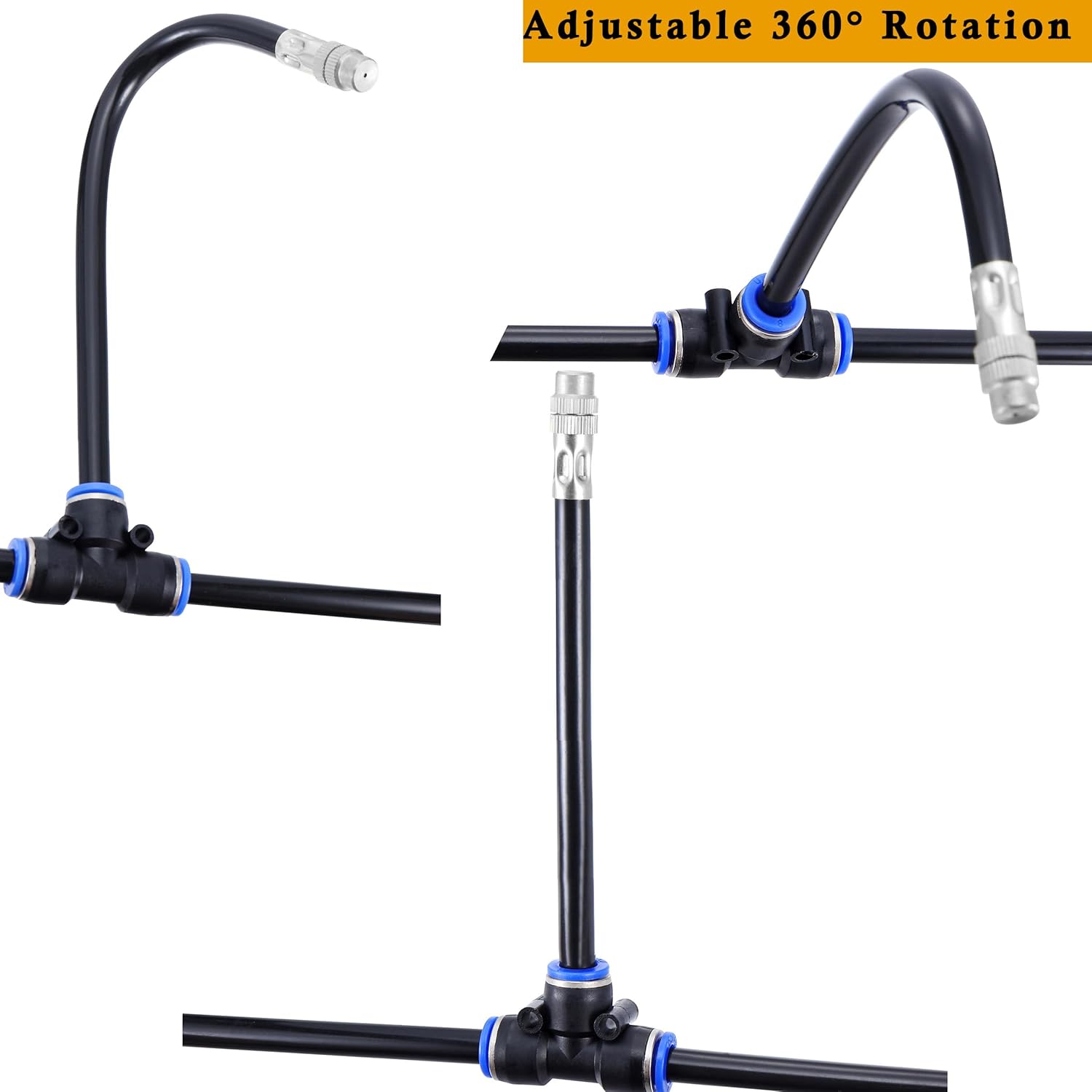 - 【Easy to Install】: Easy to install and disassemble. Tubes can be easily inserted or pulled out by pressing the blue snap button. And by twisting nozzle, you can adjust the water volume. Atomizing Misting Sprayer outer diameter: 0.35inch, orifice diameter: 1.1mm (0.043").