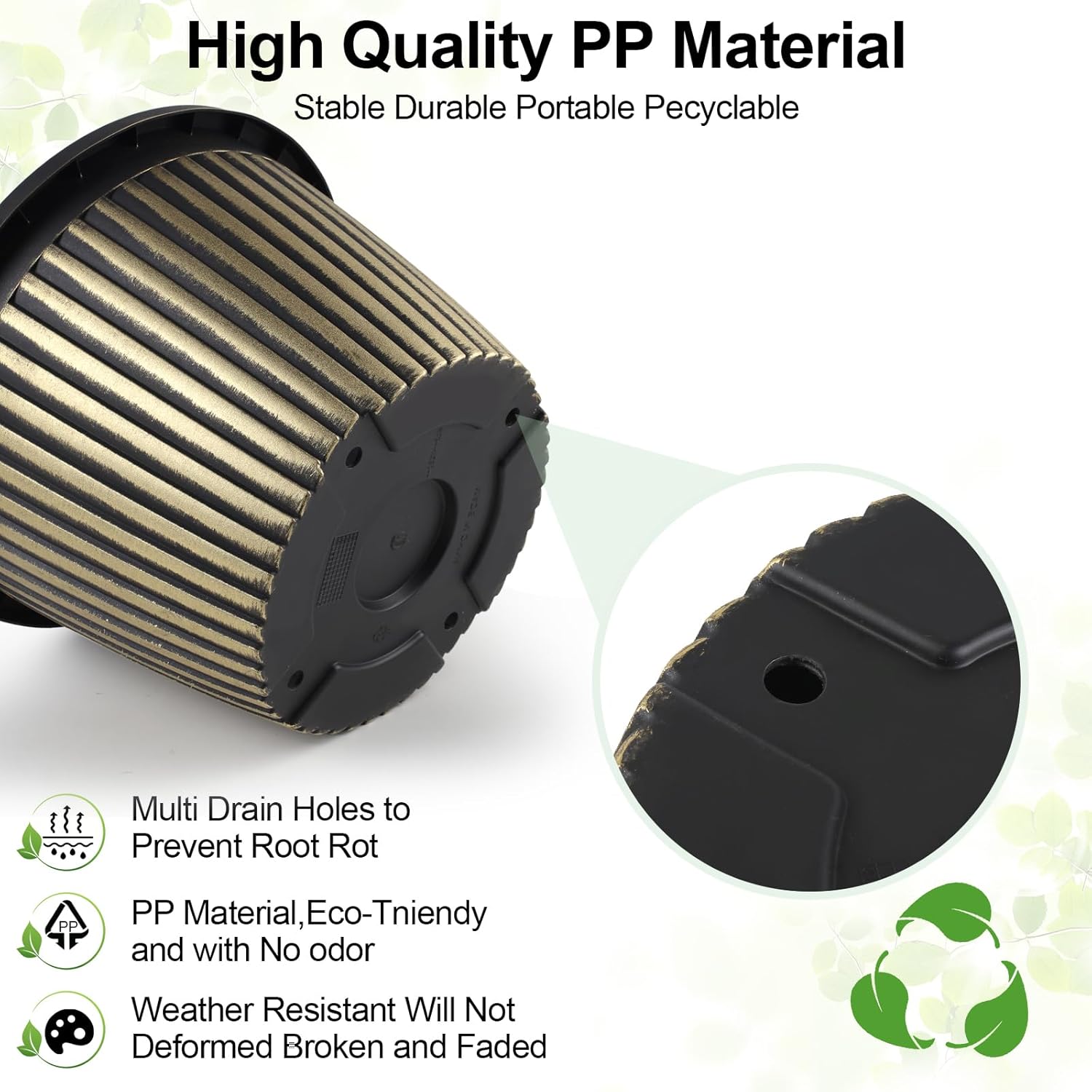 - 【MODERN STYLE PLANTERS】 Indoor planters with saucers provide a unique,nice style in ribbed design which gives an understated elegance that will enhance the beauty of your plant. These 16 inch plant pots are available in red-brown &blue-green & gold finished with a black antique stain. Plastic flower pots would be a beautiful addition to anyone’s deck or sunroom or house!