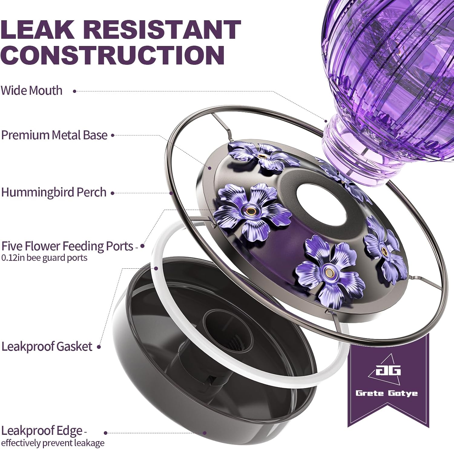 - LEAKPROOF FUNCTION - Build-in durable gasket, unique design makes base connection proper and seamless, even when the hummingbird feeders for outdoors hanging is shaken by wind or birds perching on it. After filling the container and screwing it onto the base, flip it over and hang it on a tree/deck hook/shepherd's hook/hangers/window hook.