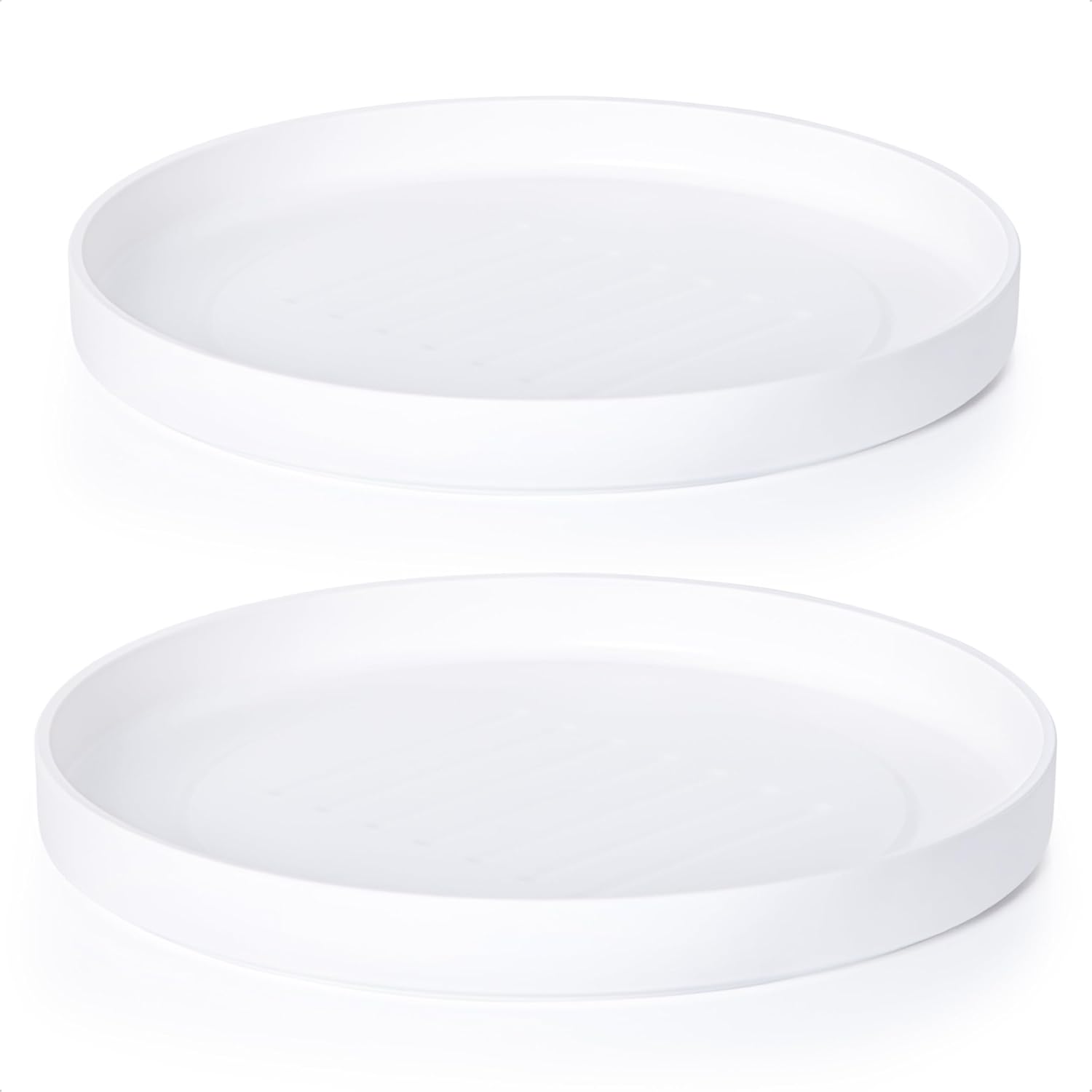 Phoenix Vine 14 Inch Plastic Plant Saucer Water Drip Tray, Heavy Sturdy Round Plant Drainage Tray for Indoors Outdoor, Set of 2, Matte White, 21-TY-14W-2