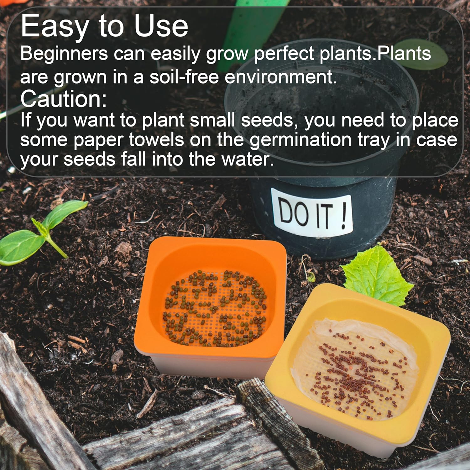 - 【Beginner-Friendly】 Simply soak your seeds, rinse and drain them, then place the sprouting tray in direct sunlight.(PS:We recommend adding 400 ml (about 13.5 ounces) of water to the base tray at a time. The water should not completely cover the seeds.)