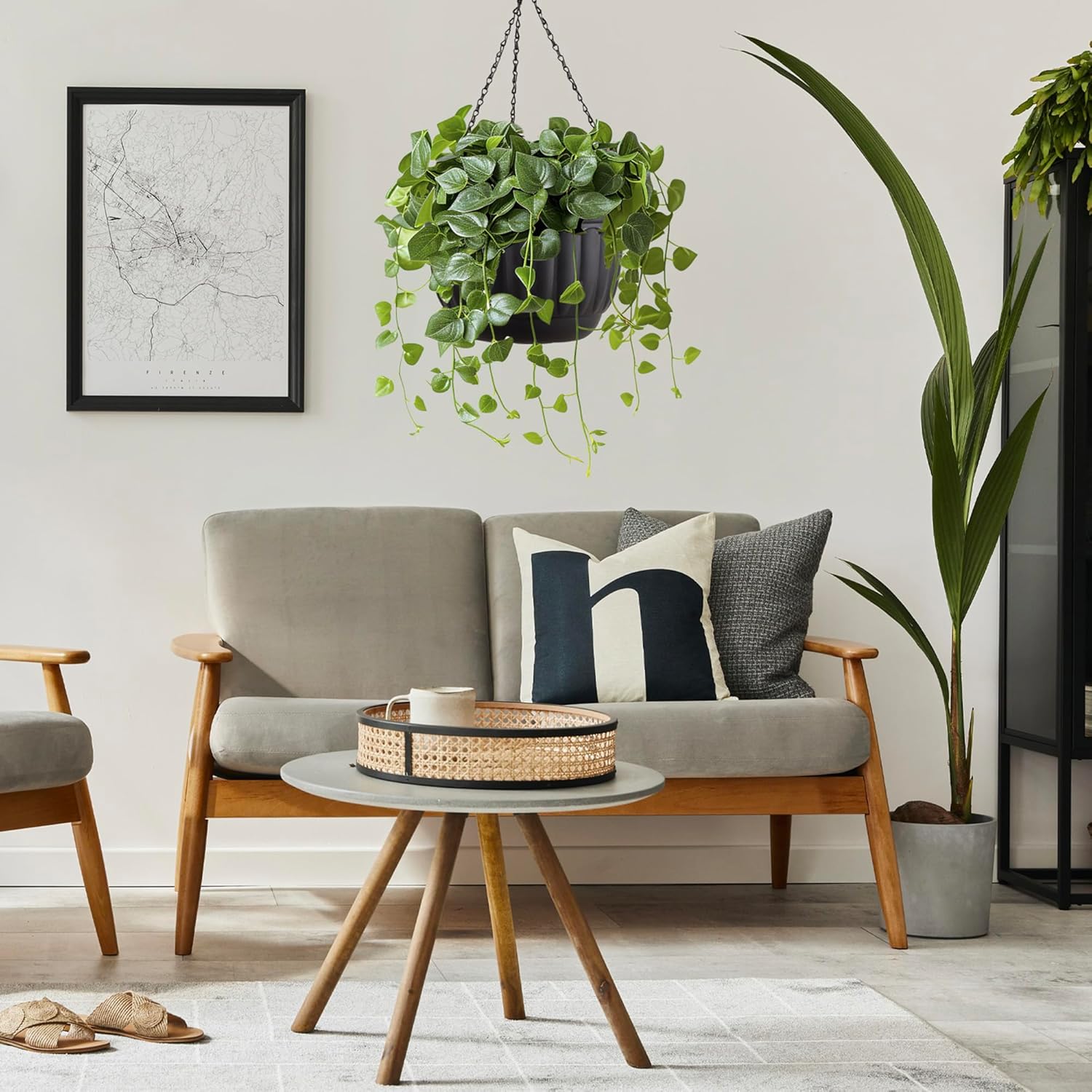 - Versatile Use: Enhance your space with versatility using indoor planter. Featuring removable detachable hanging chains, black hanging pots for plants indoor is perfect for outdoor areas like patios, gardens, and balconies, or indoor spaces such as kitchens, living rooms, dining rooms, bedrooms, and windowsills. outdoor planter for patio’s flat bottom also allows pots for outdoor plants to sit on desktops without chains.