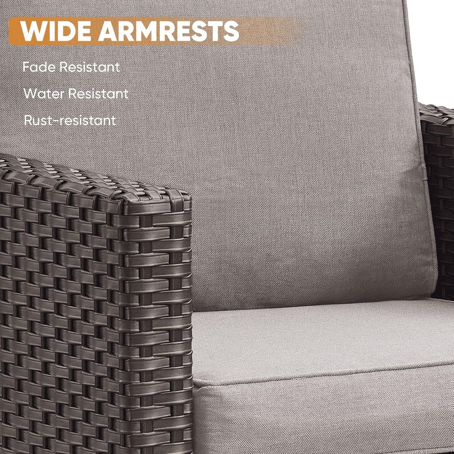 - Durable Sturdy Construction:All made with anti-rust powder-coated metal frame and high-quality Handwoven PE wicker which makes this patio furniture set resistant to UV and all weather,The upgrated trapezoidal feet provides strong support,with the non-slip plug, it will help you to avoid scratches on the floor when you move the furniture around.