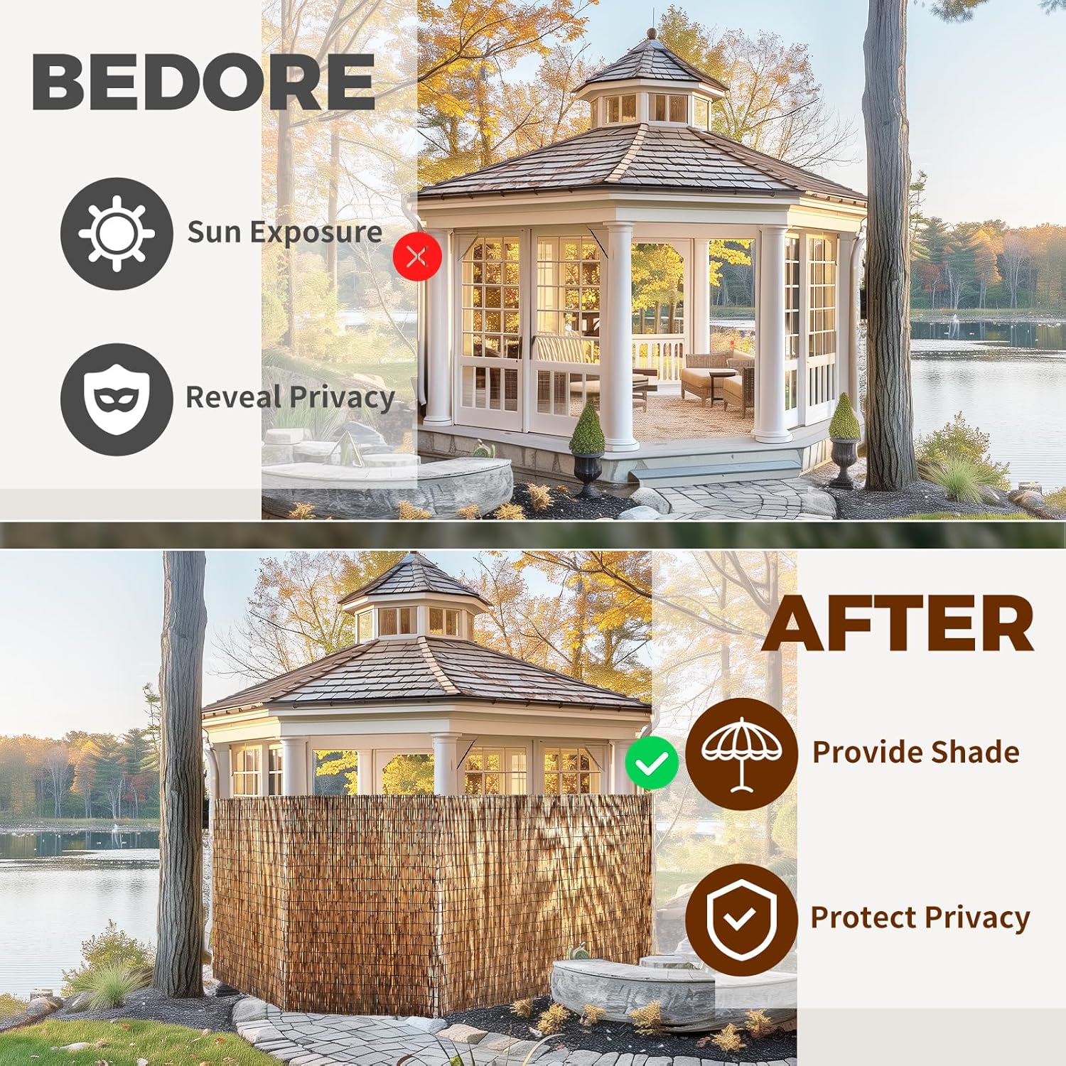- More Shade and Privacy:This reed screen is made of natural reeds, tightly woven together to block sunlight and block the view of neighbors. In addition, the reed screen allows weak light to pass through, providing necessary light for reading or daily activities