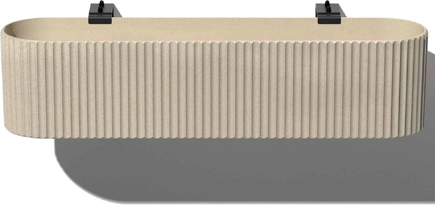 - DURABLE MATERIAL: Made from a plastic-stone composite, this railing planter box has a subtle textured finish and is all-weather resistant to cracks, scratches, UV and fading; perfect for hot or cold climates ranging from -20 to +120 degrees